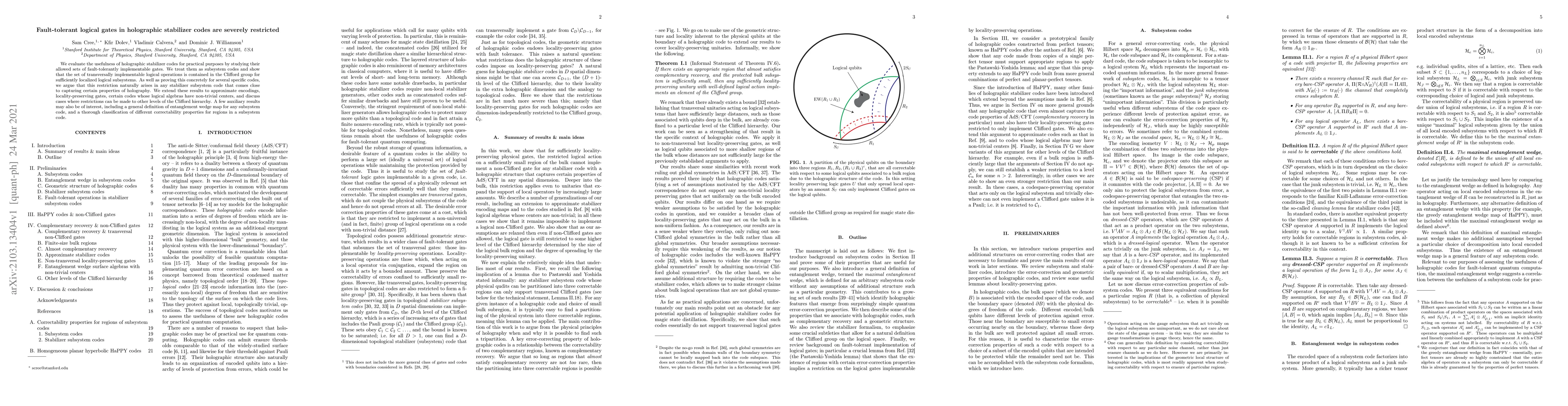 This paper examines the limitations of holographic stabilizer codes for practical quantum computing, showing that their fault-tolerant logical gates are restricted to the Clifford group. The authors prove this for specific codes and argue the generality of this restriction in codes with holographic properties.