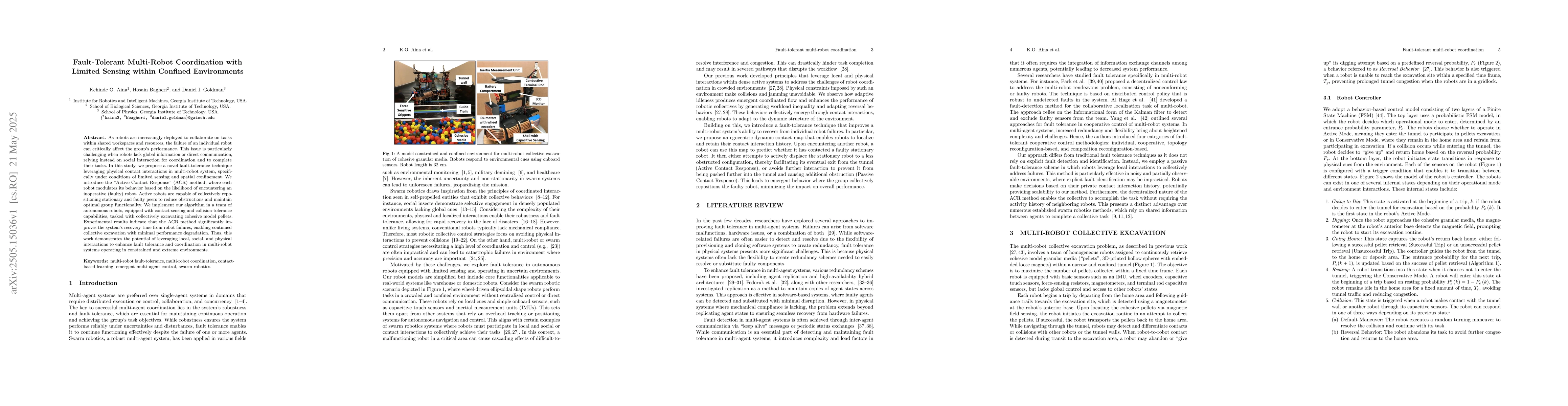 A new fault-tolerance technique called Active Contact Response (ACR) improves multi-robot coordination in confined environments with limited sensing by leveraging physical contact interactions to reposition faulty robots.