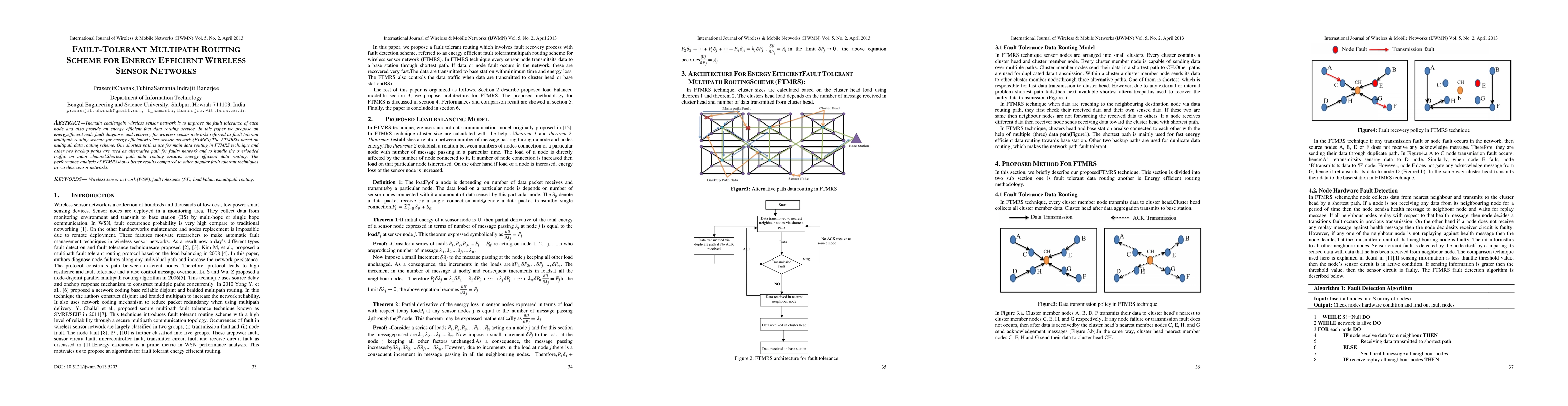 This paper proposes an energy-efficient fault-tolerant multipath routing scheme (FTMRS) for wireless sensor networks, utilizing one main shortest path and two backup paths to enhance fault diagnosis and recovery, ensuring efficient data routing and improved performance over existing fault-tolerant techniques.