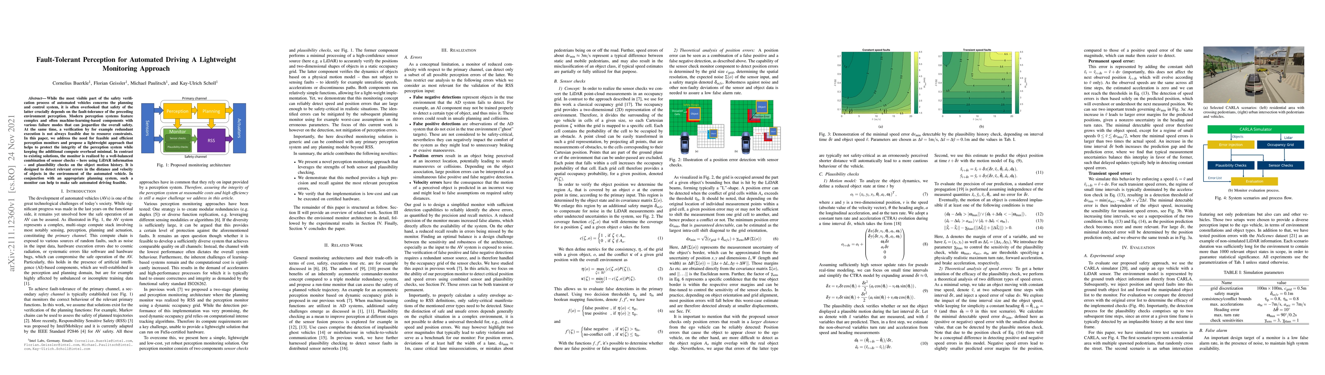 This paper proposes a lightweight monitoring approach to enhance the fault-tolerance of automated driving perception systems, combining LiDAR sensor checks and plausibility checks on object motion history to detect errors in distance and velocity, thereby ensuring safe automated driving with minimal additional compute overhead.