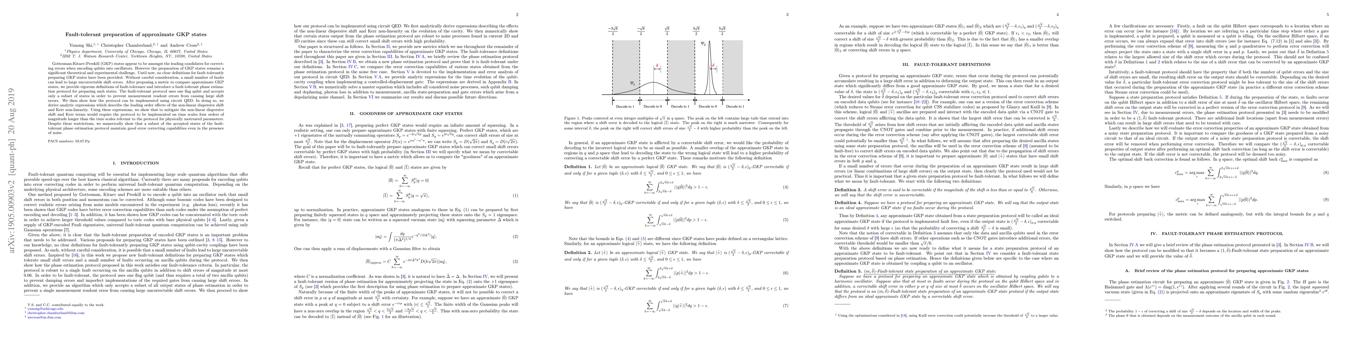 This paper proposes a fault-tolerant protocol for preparing approximate GKP states, addressing the challenge of error correction in qubit encoding. It introduces a metric for comparing these states and demonstrates a protocol using circuit QED that mitigates measurement errors, showing that despite long implementation times, the protocol maintains good error-correcting capabilities under noise.