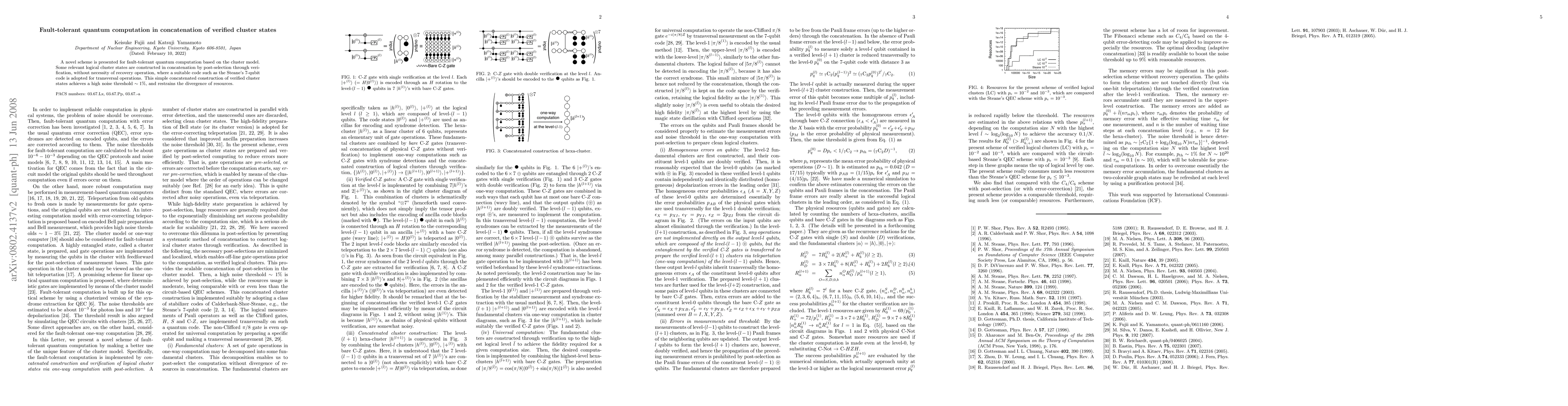 This paper proposes a novel fault-tolerant quantum computation scheme using the cluster model, constructing logical cluster states in concatenation via verification without recovery, achieving a high noise threshold of ~1% and efficient resource management. The method employs Steane's 7-qubit code for transversal operations.