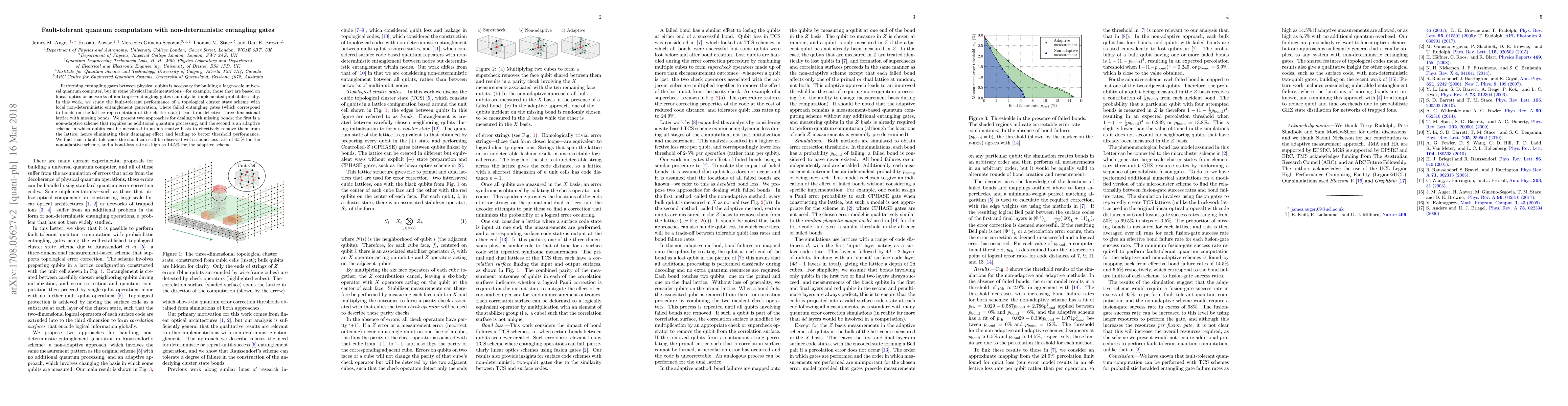 This research is significant for systems with non-deterministic entangling gates, particularly linear optical schemes, as it demonstrates the feasibility of fault-tolerant quantum computation with relatively high bond-failure rates.