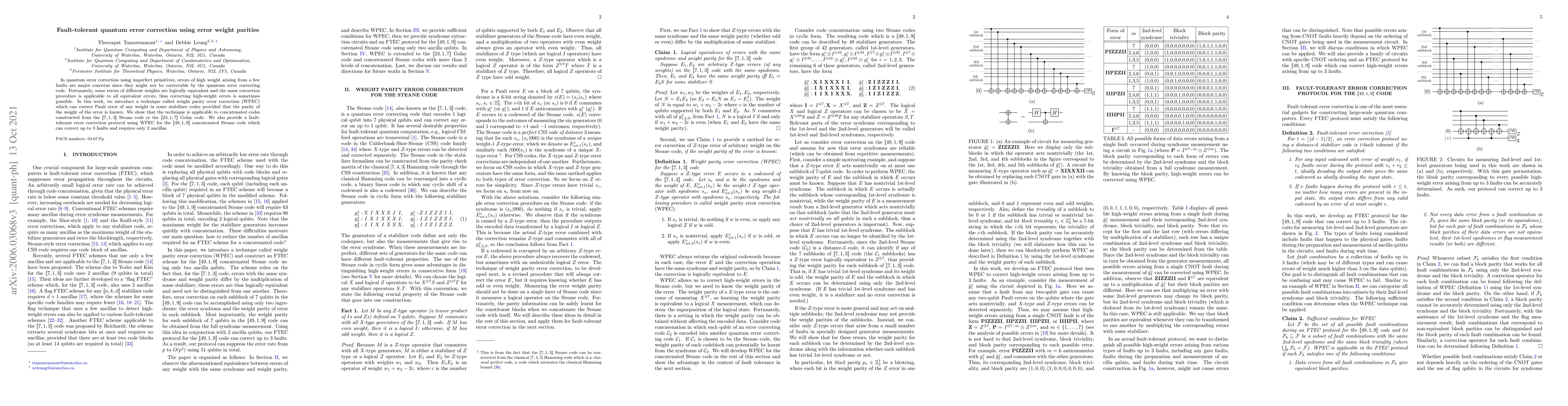The introduction of weight parity error correction (WPEC) provides a new approach for fault-tolerant quantum error correction, which can correct high-weight errors in some stabilizer codes.
