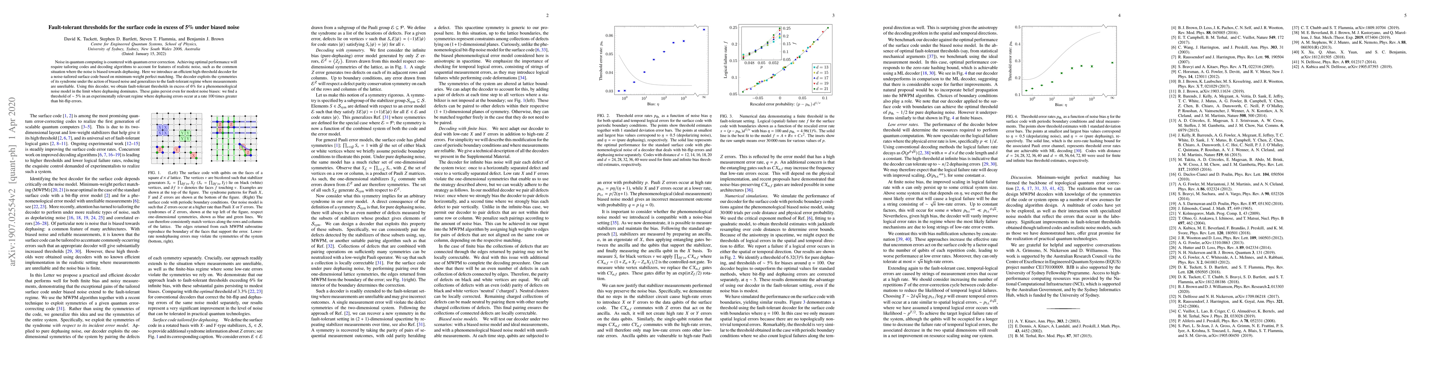 This paper presents an efficient high-threshold decoder for a noise-tailored surface code that achieves fault-tolerant thresholds exceeding 6% under biased dephasing noise, demonstrating a threshold of around 5% even when dephasing errors are significantly more frequent than bit-flip errors.