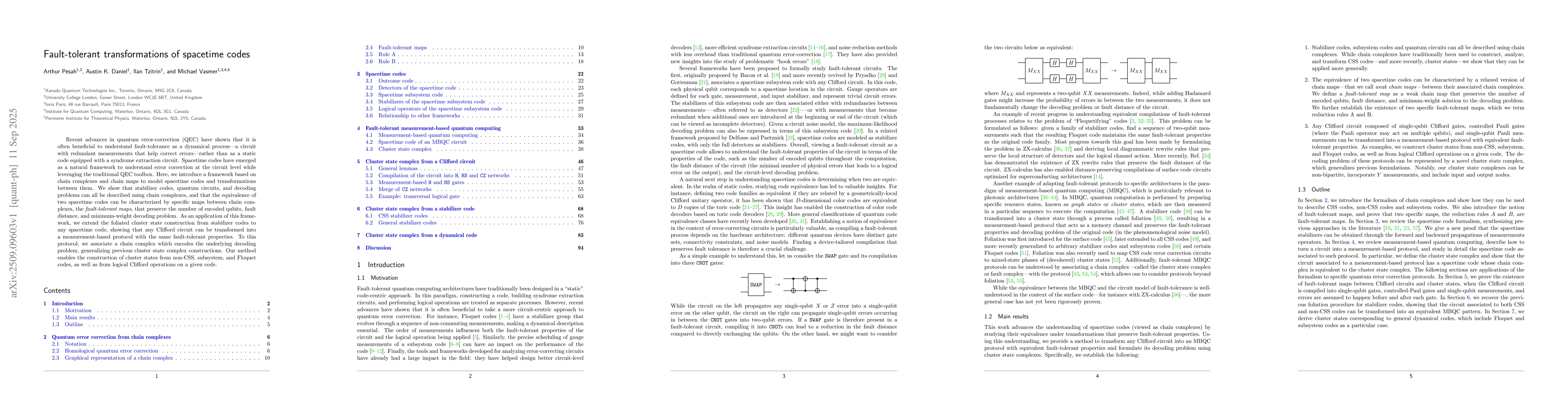 Recent advances in quantum error-correction (QEC) have shown that it is often beneficial to understand fault-tolerance as a dynamical process, a circuit with redundant measurements that help correct errors, rather than as a static code equipped with a syndrome extraction circuit. Spacetime codes have emerged as a natural framework to understand error correction at the circuit level while leveraging the traditional QEC toolbox. Here, we introduce a framework based on chain complexes and chain maps to model spacetime codes and transformations between them. We show that stabilizer codes, quantum circuits, and decoding problems can all be described using chain complexes, and that the equivalence of two spacetime codes can be characterized by specific maps between chain complexes, the fault-tolerant maps, that preserve the number of encoded qubits, fault distance, and minimum-weight decoding problem. As an application of this framework, we extend the foliated cluster state construction from stabilizer codes to any spacetime code, showing that any Clifford circuit can be transformed into a measurement-based protocol with the same fault-tolerant properties. To this protocol, we associate a chain complex which encodes the underlying decoding problem, generalizing previous cluster state complex constructions. Our method enables the construction of cluster states from non-CSS, subsystem, and Floquet codes, as well as from logical Clifford operations on a given code.