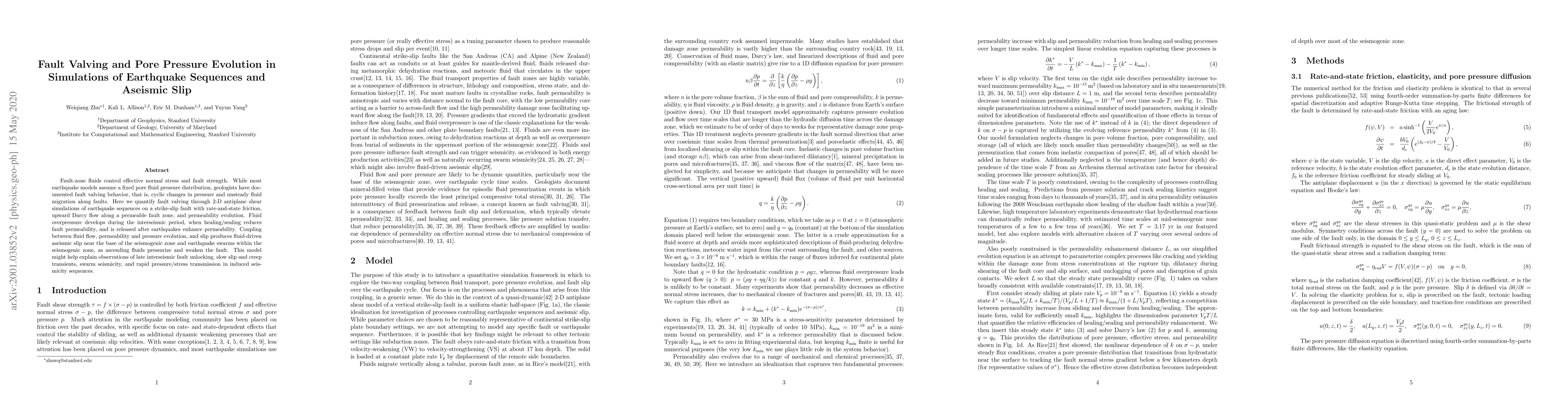 This study investigates the dynamic interplay between fault valving, pore pressure evolution, and seismicity through 2-D simulations. It demonstrates that cyclic fluid pressure changes and permeability evolution lead to fluid-driven aseismic slip and earthquake swarms, potentially explaining observed seismic phenomena.