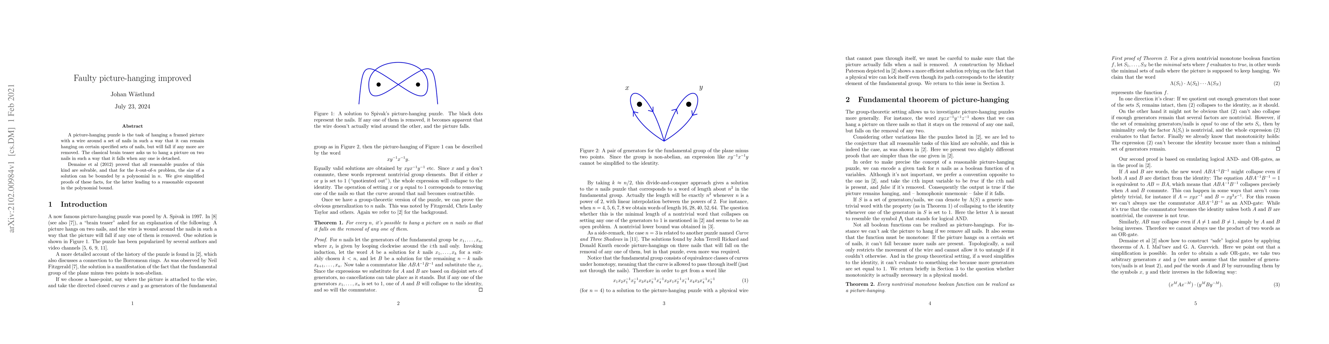 A picture-hanging puzzle is the task of hanging a framed picture with a wire around a set of nails in such a way that it can remain hanging on certain specified sets of nails, but will fall if any more are removed. The classical brain teaser asks us to hang a picture on two nails in such a way that it falls when any one is detached. Demaine et al (2012) proved that all reasonable puzzles of this kind are solvable, and that for the $k$-out-of-$n$ problem, the size of a solution can be bounded by a polynomial in $n$. We give simplified proofs of these facts, for the latter leading to a reasonable exponent in the polynomial bound.