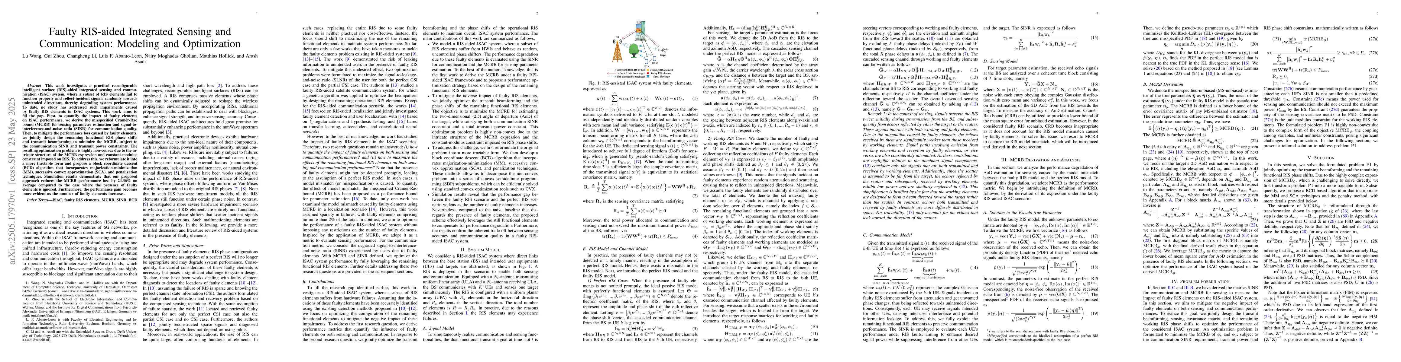 This research is novel as it is the first to model and optimize for faulty RIS elements in integrated sensing and communication systems, presenting a solution to a previously unaddressed practical challenge.