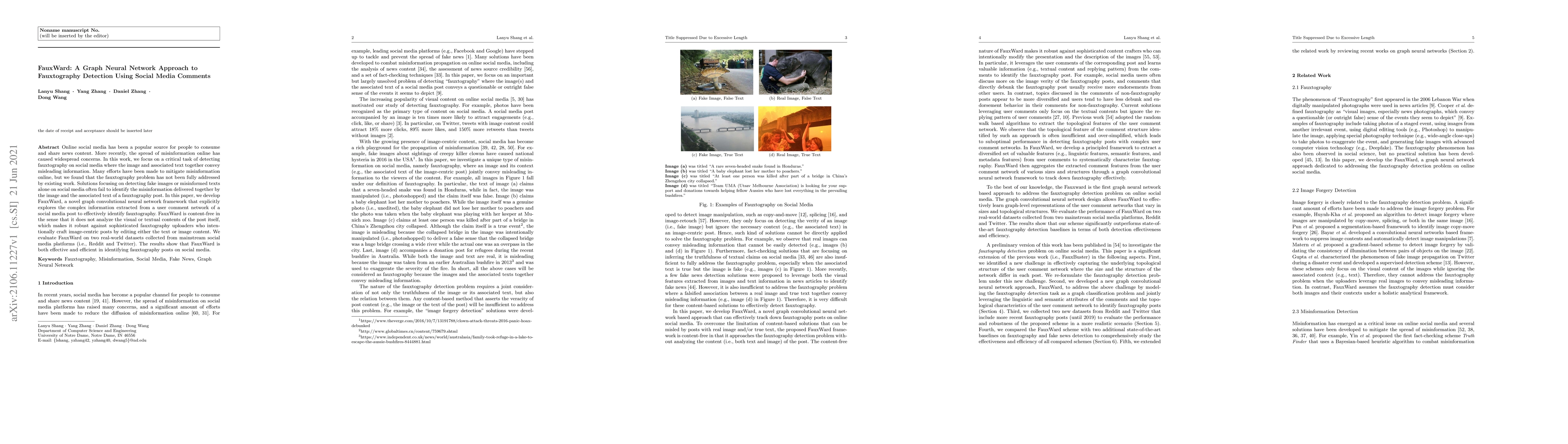 A new graph neural network framework called FauxWard detects fauxtography on social media by analyzing user comments, effectively identifying posts with misleading images and text.