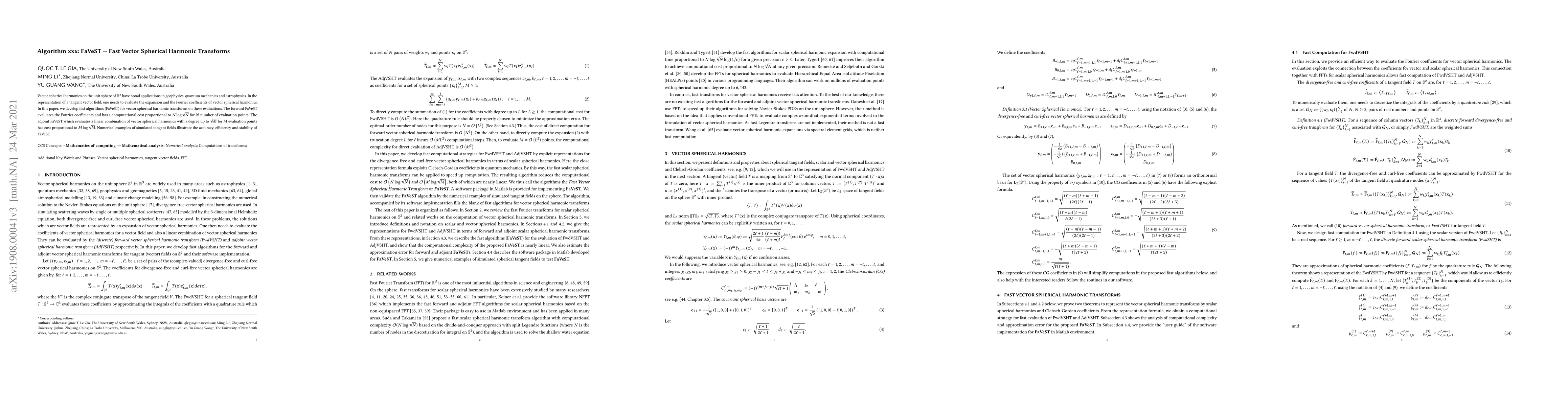 This paper presents FaVeST, a fast algorithm for vector spherical harmonic transforms, achieving efficient evaluation of Fourier coefficients and linear combinations of vector spherical harmonics with computational costs of $N\log \sqrt{N}$ and $M\log\sqrt{M}$ respectively, demonstrating accuracy and stability through numerical simulations.