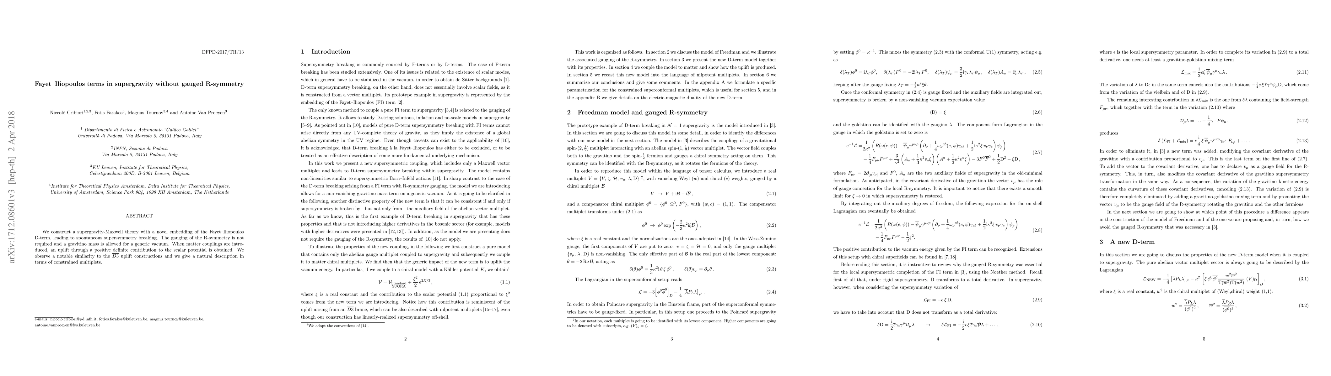 We construct a supergravity-Maxwell theory with a novel embedding of the Fayet-Iliopoulos D-term, leading to spontaneous supersymmetry breaking. The gauging of the R-symmetry is not required and a gravitino mass is allowed for a generic vacuum. When matter couplings are introduced, an uplift through a positive definite contribution to the scalar potential is obtained. We observe a notable similarity to the $\overline{D3}$ uplift constructions and we give a natural description in terms of constrained multiplets.