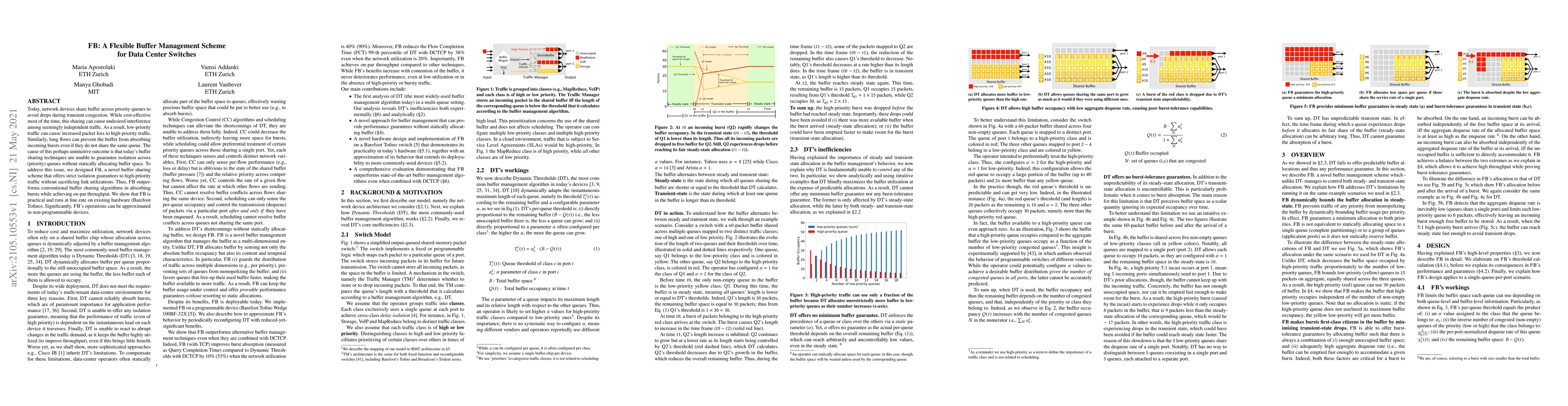 A new buffer management scheme called FB provides strict isolation guarantees for high-priority traffic while maintaining link utilization, outperforming conventional sharing algorithms in absorbing bursts.