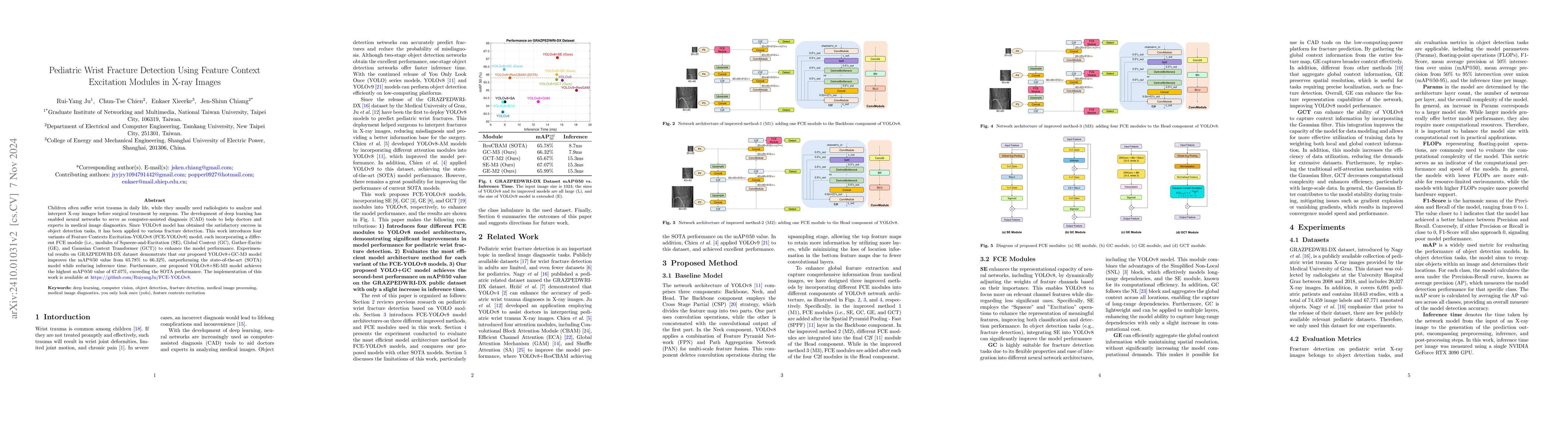 This research introduces four variants of Feature Context Excitation-YOLOv8 (FCE-YOLOv8) model, each incorporating a different FCE module (SE, GC, GE, GCT) to enhance performance for fracture detection in pediatric wrist X-ray images.