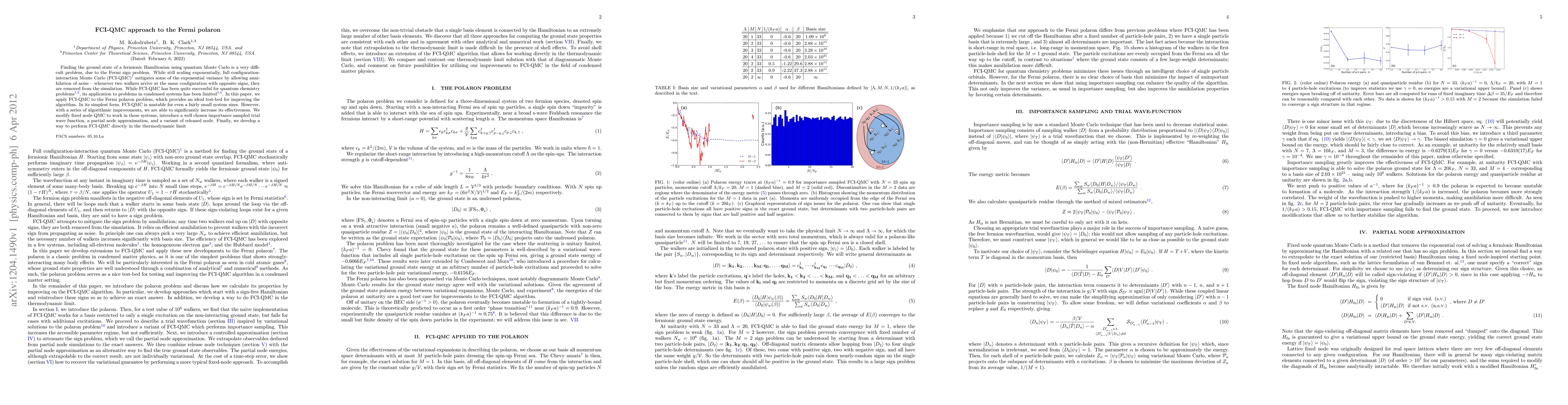 Finding the ground state of a fermionic Hamiltonian using quantum Monte Carlo is a very difficult problem, due to the Fermi sign problem. While still scaling exponentially, full configuration-interaction Monte Carlo (FCI-QMC) mitigates some of the exponential variance by allowing annihilation of noise -- whenever two walkers arrive at the same configuration with opposite signs, they are removed from the simulation. While FCI-QMC has been quite successful for quantum chemistry problems, its application to problems in condensed systems has been limited. In this paper, we apply FCI-QMC to the Fermi polaron problem, which provides an ideal test-bed for improving the algorithm. In its simplest form, FCI-QMC is unstable for even a fairly small system sizes. However, with a series of algorithmic improvements, we are able to significantly increase its effectiveness. We modify fixed node QMC to work in these systems, introduce a well chosen importance sampled trial wave function, a partial node approximation, and a variant of released node. Finally, we develop a way to perform FCI-QMC directly in the thermodynamic limit.