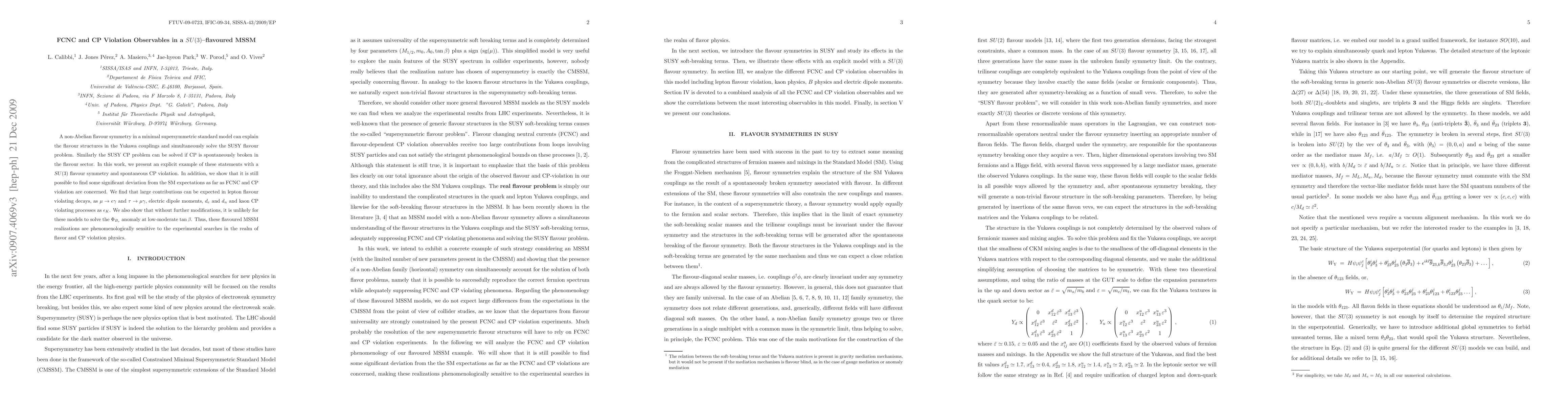 A non-Abelian flavour symmetry in a minimal supersymmetric standard model can explain the flavour structures in the Yukawa couplings and simultaneously solve the SUSY flavour problem. Similarly the SUSY CP problem can be solved if CP is spontaneously broken in the flavour sector. In this work, we present an explicit example of these statements with a SU(3) flavour symmetry and spontaneous CP violation. In addition, we show that it is still possible to find some significant deviation from the SM expectations as far as FCNC and CP violation are concerned. We find that large contributions can be expected in lepton flavour violating decays, as $\mu \to e \gamma$ and $\tau \to \mu \gamma$, electric dipole moments, $d_e$ and $d_n$ and kaon CP violating processes as $\epsilon_K$. Thus, these flavoured MSSM realizations are phenomenologically sensitive to the experimental searches in the realm of flavor and CP vioation physics.