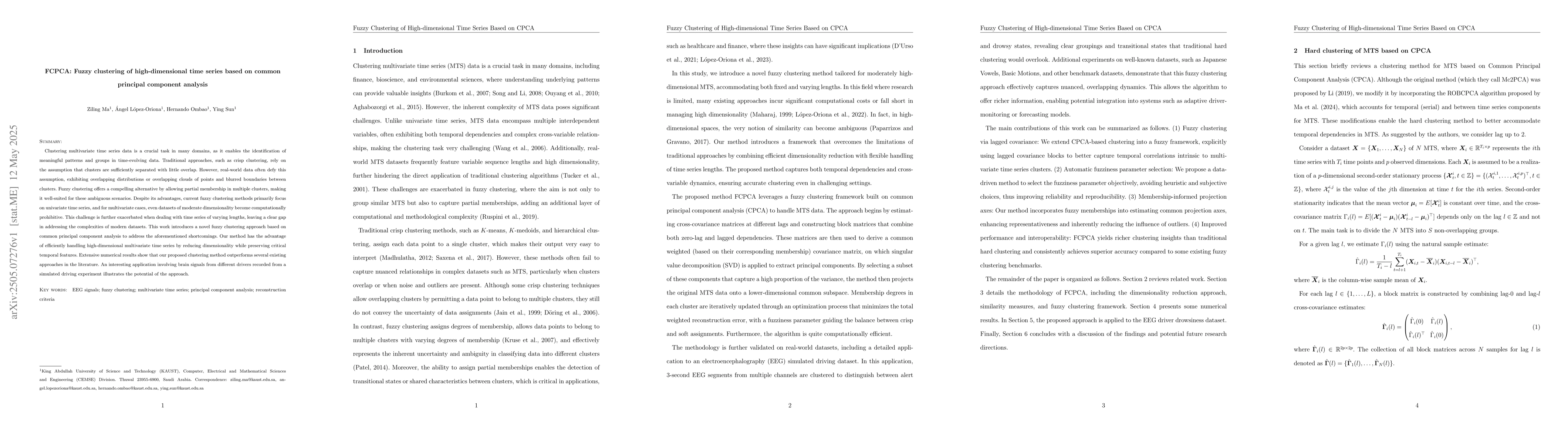 The paper proposes FCPCA, a fuzzy clustering method for high-dimensional multivariate time series based on common principal component analysis, which efficiently reduces dimensionality while preserving temporal features.