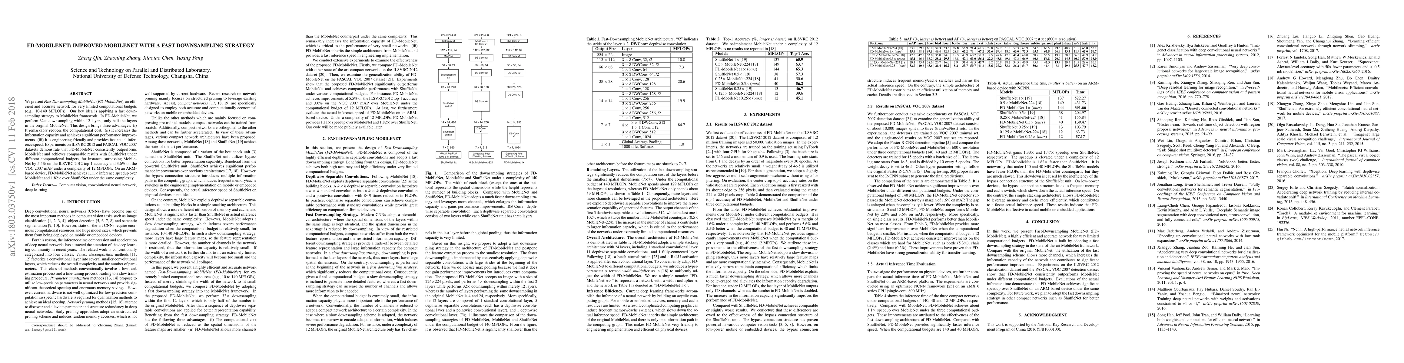 We present Fast-Downsampling MobileNet (FD-MobileNet), an efficient and accurate network for very limited computational budgets (e.g., 10-140 MFLOPs). Our key idea is applying an aggressive downsampling strategy to MobileNet framework. In FD-MobileNet, we perform 32$\times$ downsampling within 12 layers, only half the layers in the original MobileNet. This design brings three advantages: (i) It remarkably reduces the computational cost. (ii) It increases the information capacity and achieves significant performance improvements. (iii) It is engineering-friendly and provides fast actual inference speed. Experiments on ILSVRC 2012 and PASCAL VOC 2007 datasets demonstrate that FD-MobileNet consistently outperforms MobileNet and achieves comparable results with ShuffleNet under different computational budgets, for instance, surpassing MobileNet by 5.5% on the ILSVRC 2012 top-1 accuracy and 3.6% on the VOC 2007 mAP under a complexity of 12 MFLOPs. On an ARM-based device, FD-MobileNet achieves 1.11$\times$ inference speedup over MobileNet and 1.82$\times$ over ShuffleNet under the same complexity.