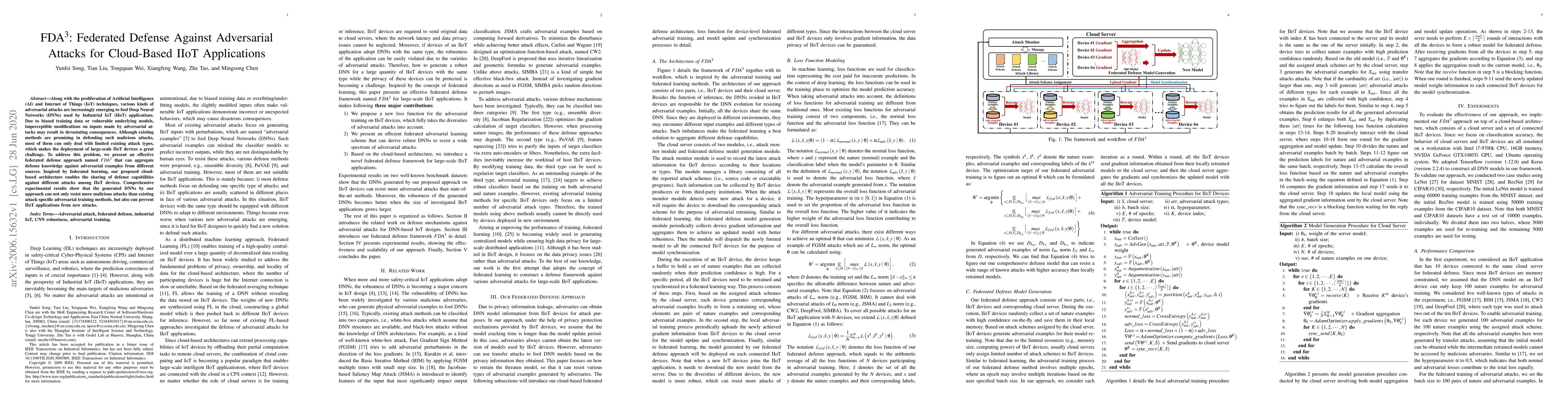 The paper introduces FDA3, a federated defense approach for cloud-based Industrial IoT applications to combat adversarial attacks. FDA3 leverages federated learning to aggregate defense knowledge from various sources, enhancing the resilience of Deep Neural Networks against both existing and new attack types.