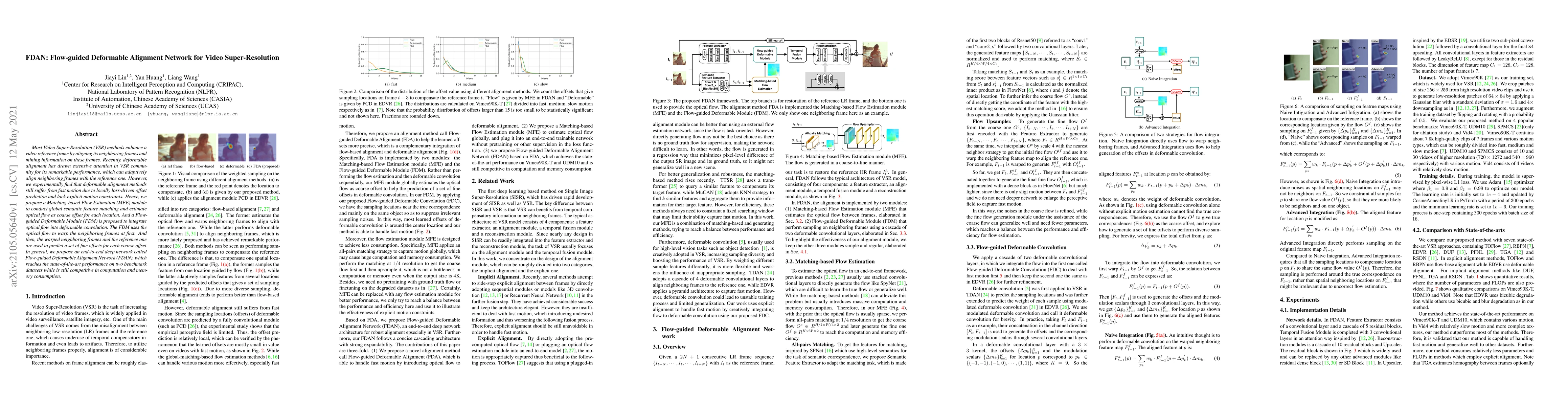 The paper proposes FDAN, a Flow-guided Deformable Alignment Network for Video Super-Resolution, which integrates a Matching-based Flow Estimation module and a Flow-guided Deformable Module to enhance video frame resolution by adaptively aligning neighboring frames, achieving state-of-the-art performance with efficient computation.