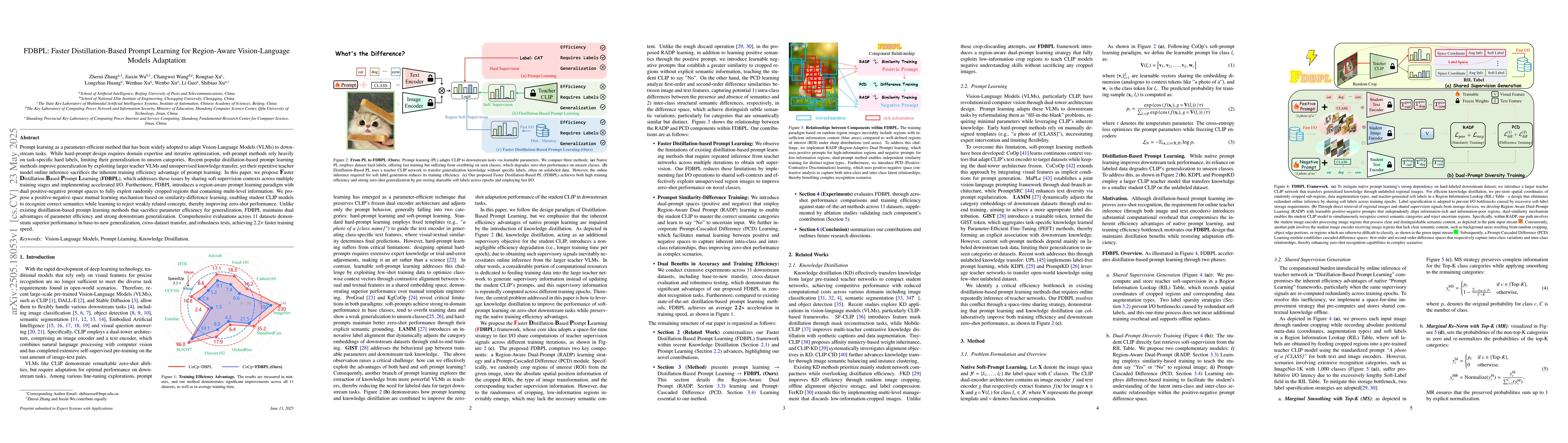 Faster Distillation-Based Prompt Learning for Region-Aware Vision-Language Models Adaptation proposes a new method that improves parameter efficiency while maintaining strong downstream generalization, achieving $2.2 imes$ faster training speed.