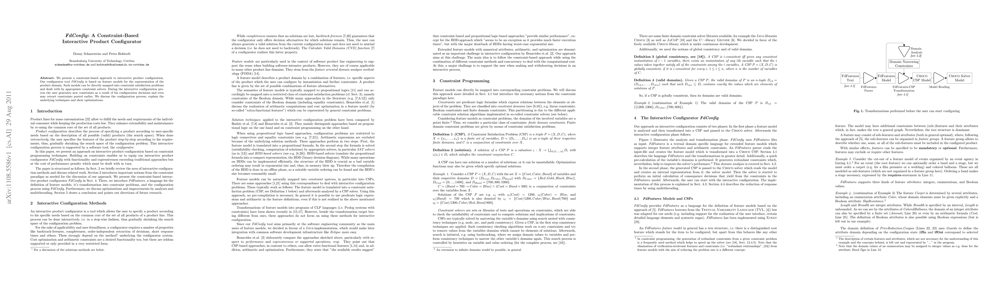 This research paper introduces FdConfig, a constraint-based tool that enables users to interactively configure products based on feature models. The tool allows users to generate and retract constraints, optimizing the configuration process.