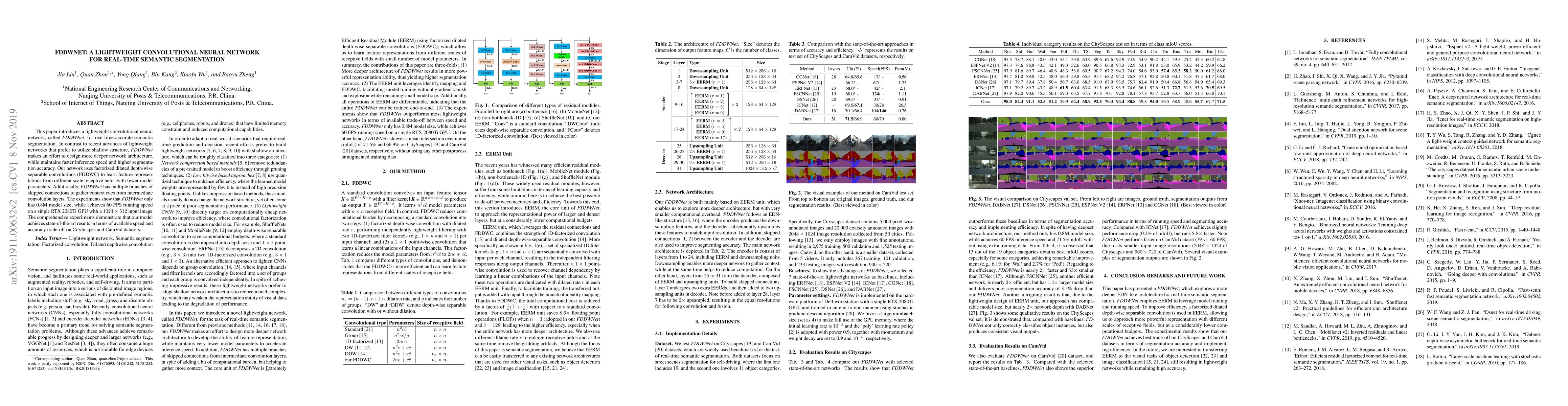 FDDWNet is a lightweight convolutional neural network that achieves state-of-the-art results in semantic segmentation with fast inference speed, using factorized dilated depth-wise separable convolutions and skipped connections.