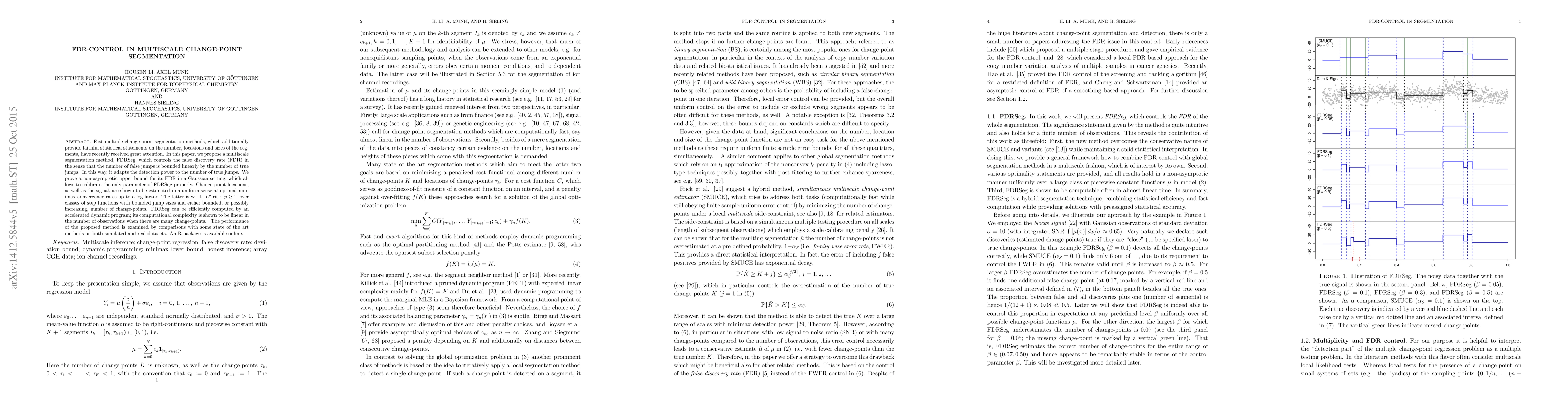 A new method called FDRSeg controls the false discovery rate in change-point segmentation, adapting to the number of true jumps and achieving optimal minimax convergence rates. It can efficiently compute change-points with high accuracy on simulated and real datasets.