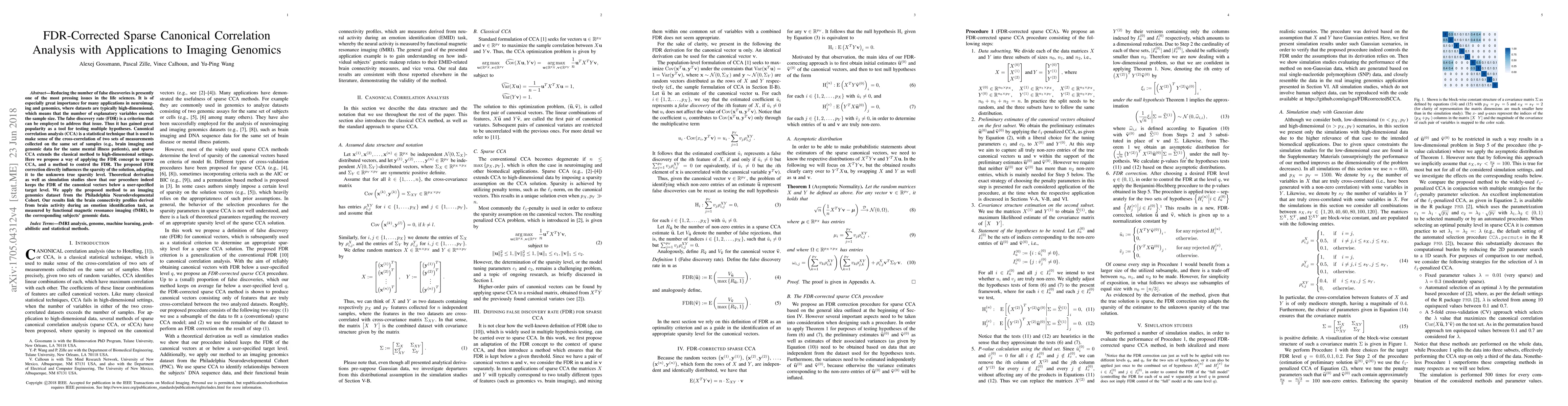 This paper proposes an FDR-corrected sparse canonical correlation analysis method to control false discoveries in high-dimensional neuroimaging and genomics data. The method adapts the sparsity level to the true underlying structure, maintaining the FDR below a specified threshold, as demonstrated through theoretical and simulation studies. The approach is applied to an imaging genomics dataset, linking brain connectivity profiles from fMRI to genomic data.