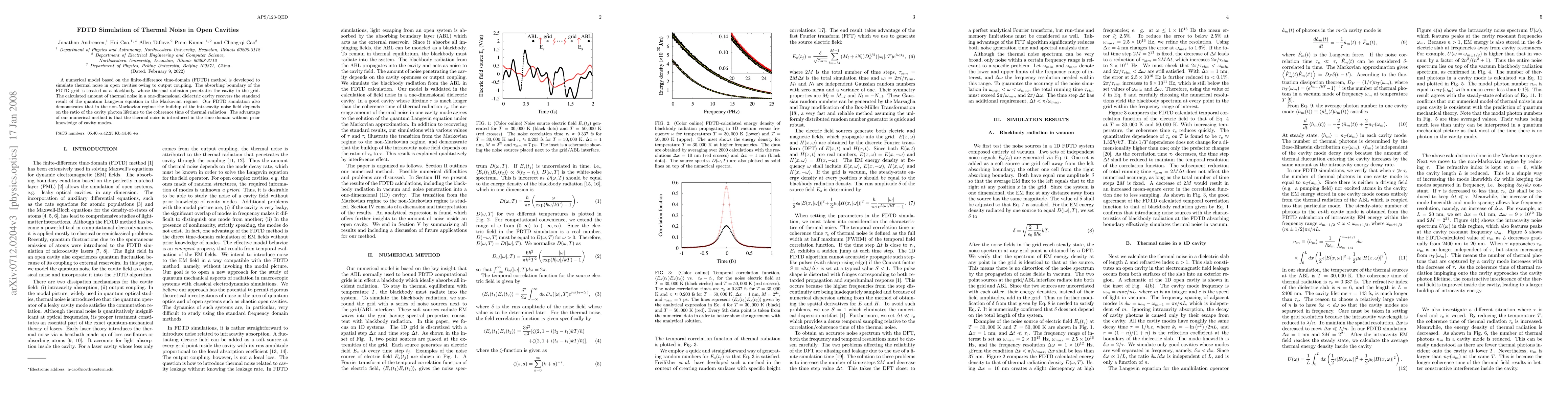 This paper develops a FDTD simulation to model thermal noise in open cavities due to output coupling, treating the absorbing boundary as a blackbody. The method shows agreement with quantum Langevin results in the Markovian regime and reveals that non-Markovian noise buildup depends on the cavity photon lifetime relative to thermal radiation coherence time.