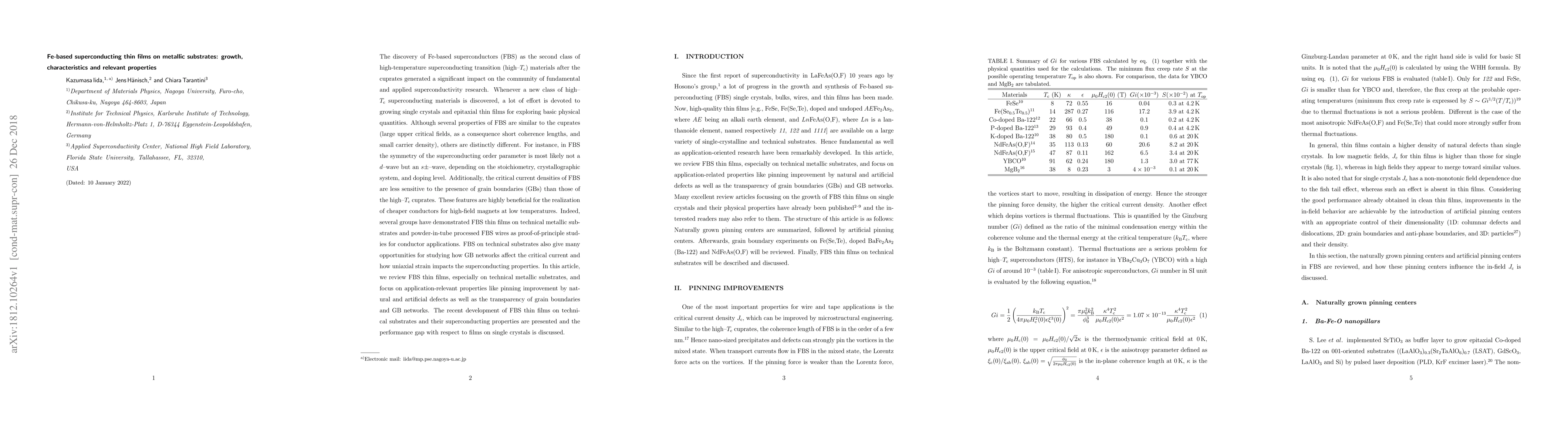 This paper reviews Fe-based superconducting thin films grown on metallic substrates, highlighting their unique properties and potential applications in high-field magnets. It focuses on the differences in superconducting order parameters and critical current densities compared to cuprates, and discusses the impact of grain boundaries and strain on their performance.