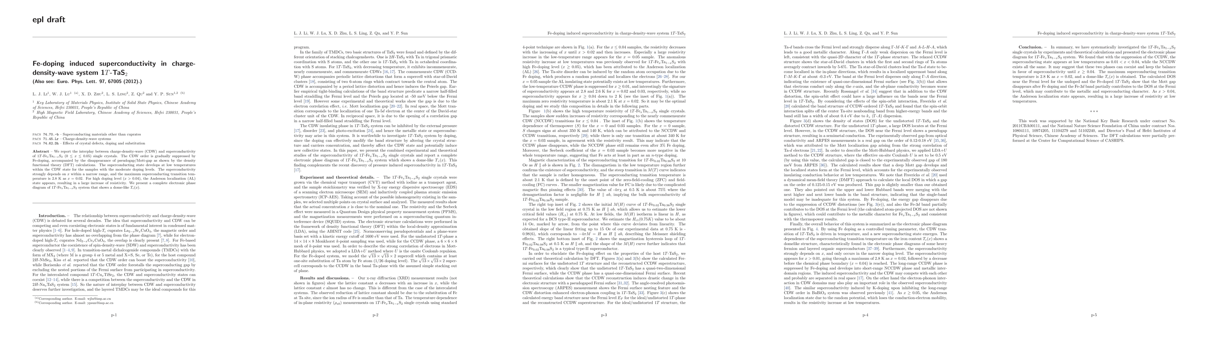 We report the interplay between charge-density-wave (CDW) and superconductivity of 1$T$-Fe$_{x}$Ta$_{1-x}$S$_{2}$ ($0\leq x \leq 0.05$) single crystals. The CDW order is gradually suppressed by Fe-doping, accompanied by the disappearance of pseudogap/Mott-gap as shown by the density functional theory (DFT) calculations. The superconducting state develops at low temperatures within the CDW state for the samples with the moderate doping levels. The superconductivity strongly depends on $x$ within a narrow range, and the maximum superconducting transition temperature is 2.8 K as $x=0.02$. We propose that the induced superconductivity and CDW phases are separated in real space. For high doping level ($x>0.04$), the Anderson localization (AL) state appears, resulting in a large increase of resistivity. We present a complete electronic phase diagram of 1$T$-Fe$_{x}$Ta$_{1-x}$S$_{2}$ system that shows a dome-like $T_{c}(x)$.