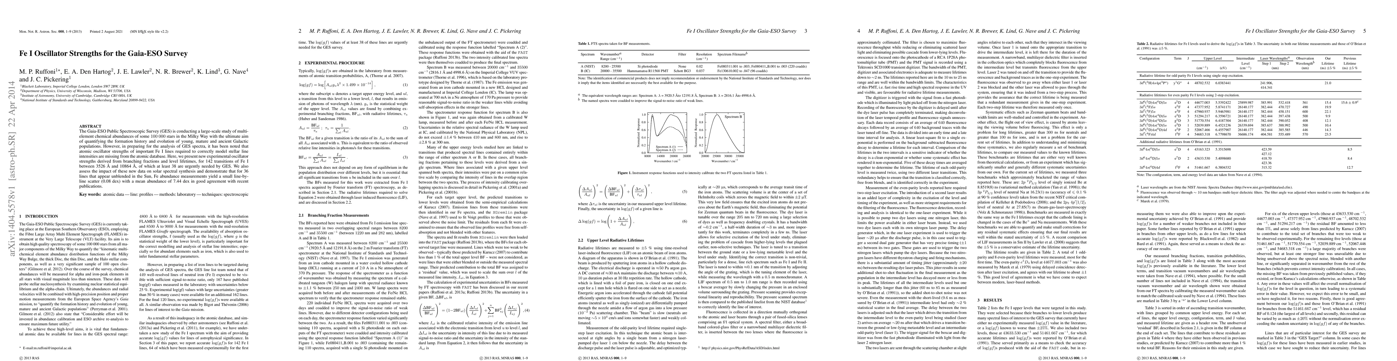 New experimental oscillator strengths for iron (Fe) lines have been measured to improve stellar spectroscopic surveys like Gaia-ESO, yielding accurate abundance measurements with minimal scatter.