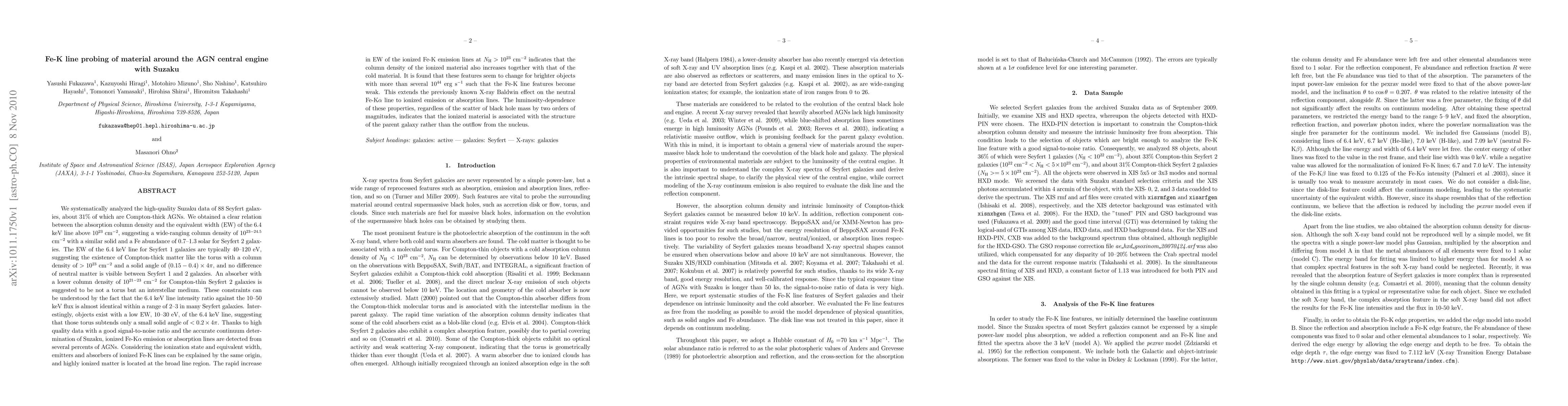 This study uses Suzaku data to analyze 88 Seyfert galaxies, revealing a strong correlation between absorption column density and the equivalent width of the 6.4 keV Fe-K line, indicating a wide column density range and suggesting Compton-thick torus structures in Seyfert 1 galaxies. The findings suggest that ionized Fe-K lines are influenced by the broad line region and that their features weaken in brighter AGNs.