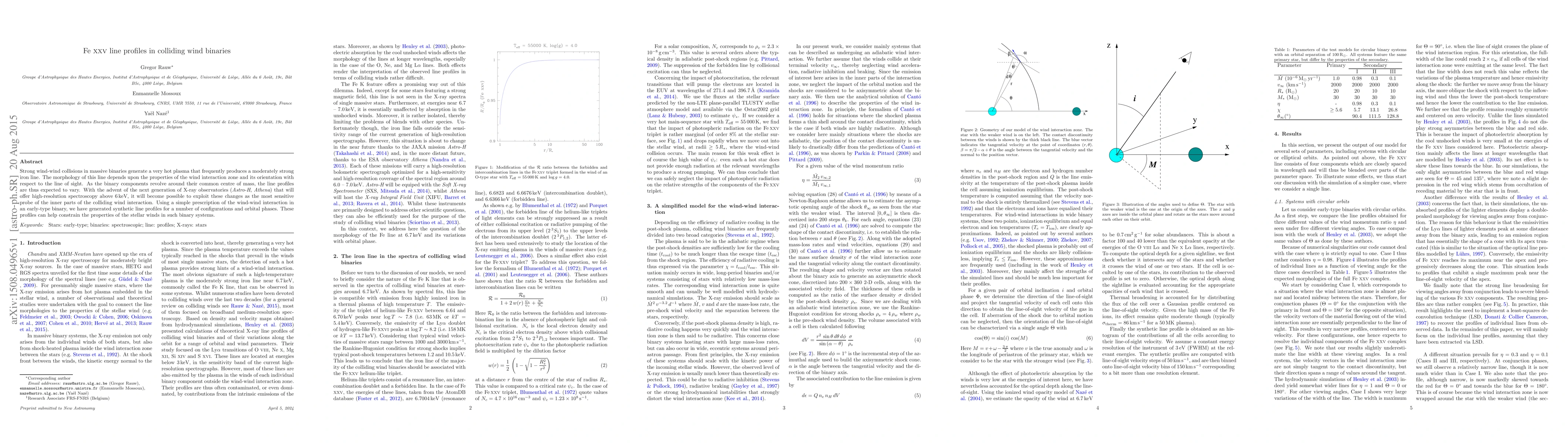 Strong wind-wind collisions in massive binaries generate a very hot plasma that frequently produces a moderately strong iron line. The morphology of this line depends upon the properties of the wind interaction zone and its orientation with respect to the line of sight. As the binary components revolve around their common centre of mass, the line profiles are thus expected to vary. With the advent of the next generation of X-ray observatories (Astro-H, Athena) that will offer high-resolution spectroscopy above 6 keV, it will become possible to exploit these changes as the most sensitive probe of the inner parts of the colliding wind interaction. Using a simple prescription of the wind-wind interaction in an early-type binary, we have generated synthetic line profiles for a number of configurations and orbital phases. These profiles can help constrain the properties of the stellar winds in such binary systems.