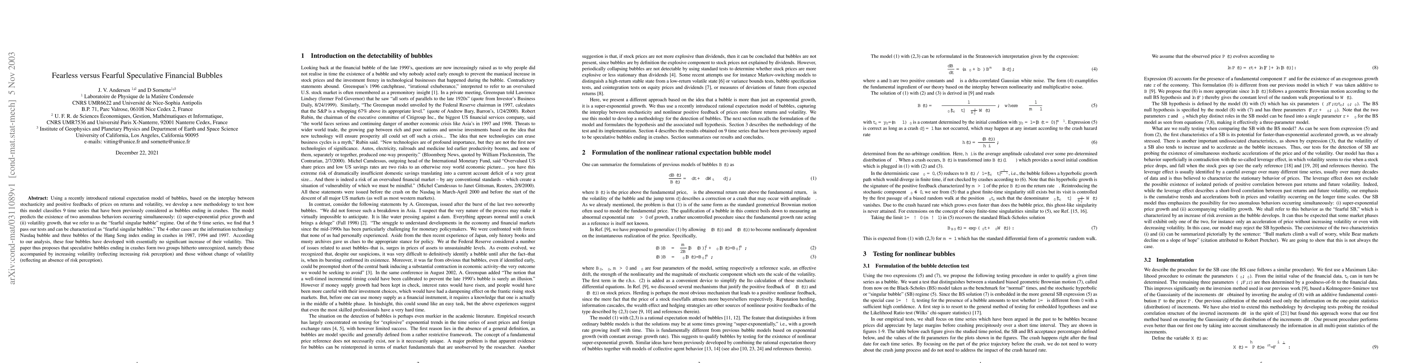 Using a recently introduced rational expectation model of bubbles, based on the interplay between stochasticity and positive feedbacks of prices on returns and volatility, we develop a new methodology to test how this model classifies 9 time series that have been previously considered as bubbles ending in crashes. The model predicts the existence of two anomalous behaviors occurring simultaneously: (i) super-exponential price growth and (ii) volatility growth, that we refer to as the ``fearful singular bubble'' regime. Out of the 9 time series, we find that 5 pass our tests and can be characterized as ``fearful singular bubbles.'' The 4 other cases are the information technology Nasdaq bubble and three bubbles of the Hang Seng index ending in crashes in 1987, 1994 and 1997. According to our analysis, these four bubbles have developed with essentially no significant increase of their volatility. This paper thus proposes that speculative bubbles ending in crashes form two groups hitherto unrecognized, namely those accompanied by increasing volatility (reflecting increasing risk perception) and those without change of volatility (reflecting an absence of risk perception).