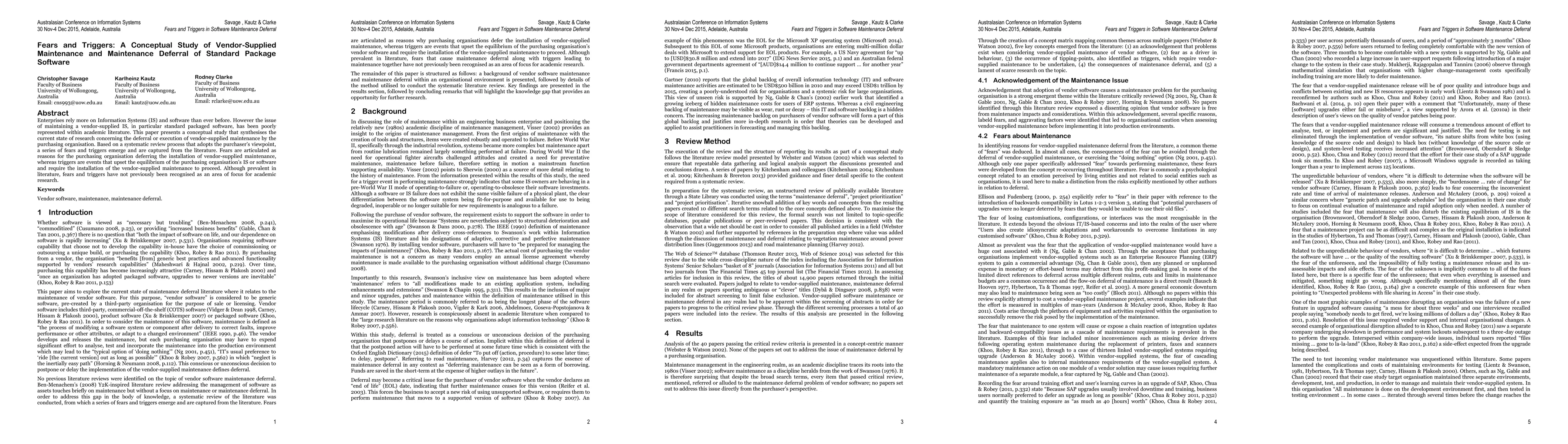 Enterprises rely more on Information Systems (IS) and software than ever before. However the issue of maintaining a vendor-supplied IS, in particular standard packaged software, has been poorly represented within academic literature. This paper presents a conceptual study that synthesises the current state of research concerning the deferral or execution of vendor-supplied maintenance by the purchasing organisation. Based on a systematic review process that adopts the purchasers viewpoint, a series of fears and triggers emerge and are captured from the literature. Fears are articulated as reasons for the purchasing organisation deferring the installation of vendor-supplied maintenance, whereas triggers are events that upset the equilibrium of the purchasing organisations IS or software and require the installation of the vendor-supplied maintenance to proceed. Although prevalent in literature, fears and triggers have not previously been recognised as an area of focus for academic research.