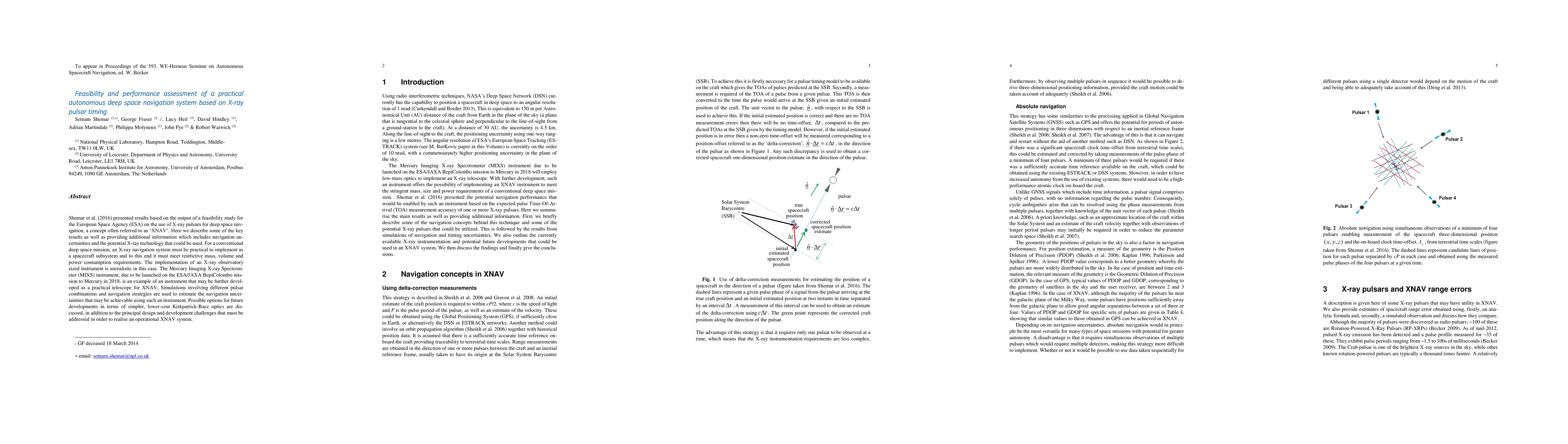 Shemar et al. (2016) presented results based on the output of a feasibility study for the European Space Agency (ESA) on the use of X-ray pulsars for deep space navigation, a concept often referred to as 'XNAV'. Here we describe some of the key results as well as providing additional information which includes navigation uncertainties and the potential X-ray technology that could be used. For a conventional deep space mission, an X-ray navigation system must be practical to implement as a spacecraft subsystem and to this end it must meet restrictive mass, volume and power consumption requirements. The implementation of an X-ray observatory sized instrument is unrealistic in this case. The Mercury Imaging X-ray Spectrometer (MIXS) instrument, due to be launched on the ESA/JAXA BepiColombo mission to Mercury in 2018, is an example of an instrument that may be further developed as a practical telescope for XNAV. Simulations involving different pulsar combinations and navigation strategies are used to estimate the navigation uncertainties that may be achievable using such an instrument. Possible options for future developments in terms of simpler, lower-cost Kirkpatrick-Baez optics are discussed, in addition to the principal design and development challenges that must be addressed in order to realise an operational XNAV system.
