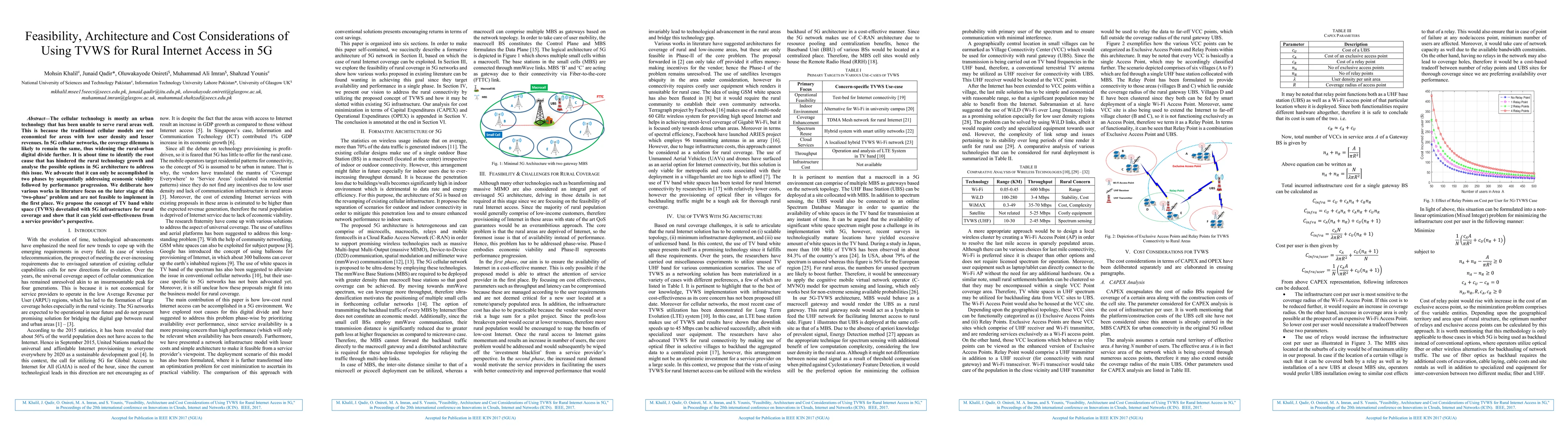The paper discusses the inefficiency of traditional cellular models for rural internet access, suggesting a two-phase solution for 5G networks. It critiques existing literature for focusing on performance rather than economic viability, proposing TV band white space (TVWS) integrated with 5G infrastructure as a cost-effective solution for rural coverage.