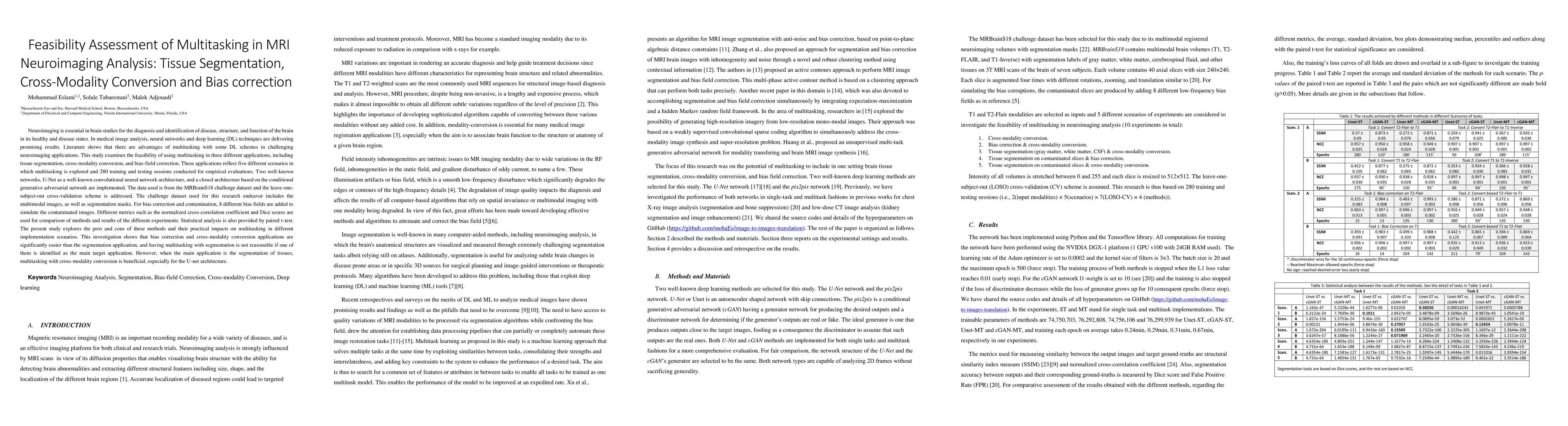 This study explores the feasibility of multitasking in MRI neuroimaging analysis, focusing on tissue segmentation, cross-modality conversion, and bias correction. Results indicate that while bias correction and conversion are straightforward, multitasking with segmentation as primary is only beneficial when segmentation itself is the main target, especially for U-Net architecture.