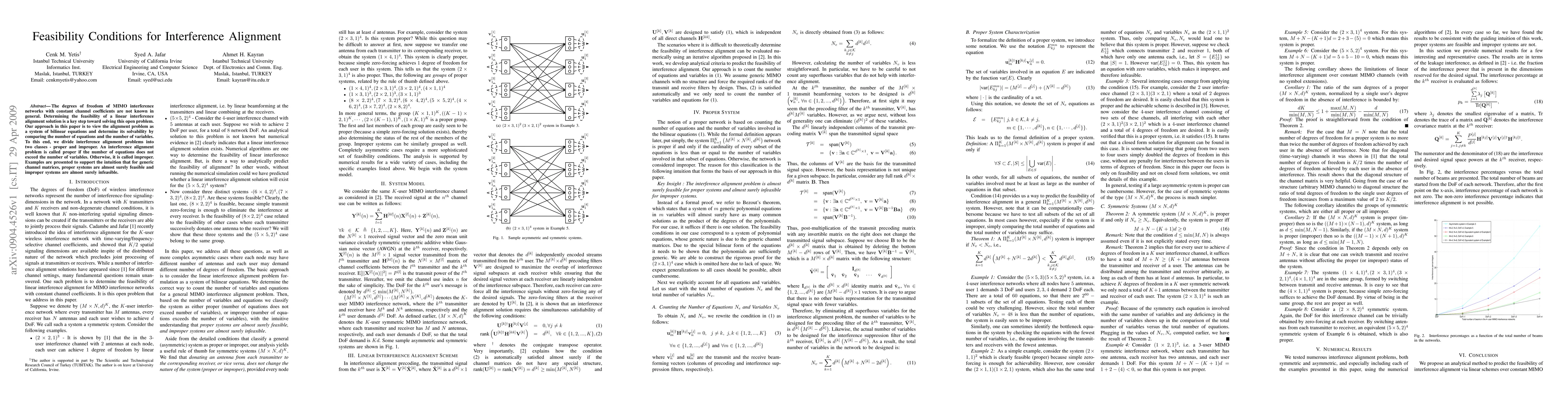 This paper explores the feasibility of linear interference alignment in MIMO networks by framing it as a system of bilinear equations. It categorizes alignment problems into proper (solvable if equations ≤ variables) and improper (likely unsolvable), demonstrating that proper systems are almost always feasible while improper ones are almost always infeasible.