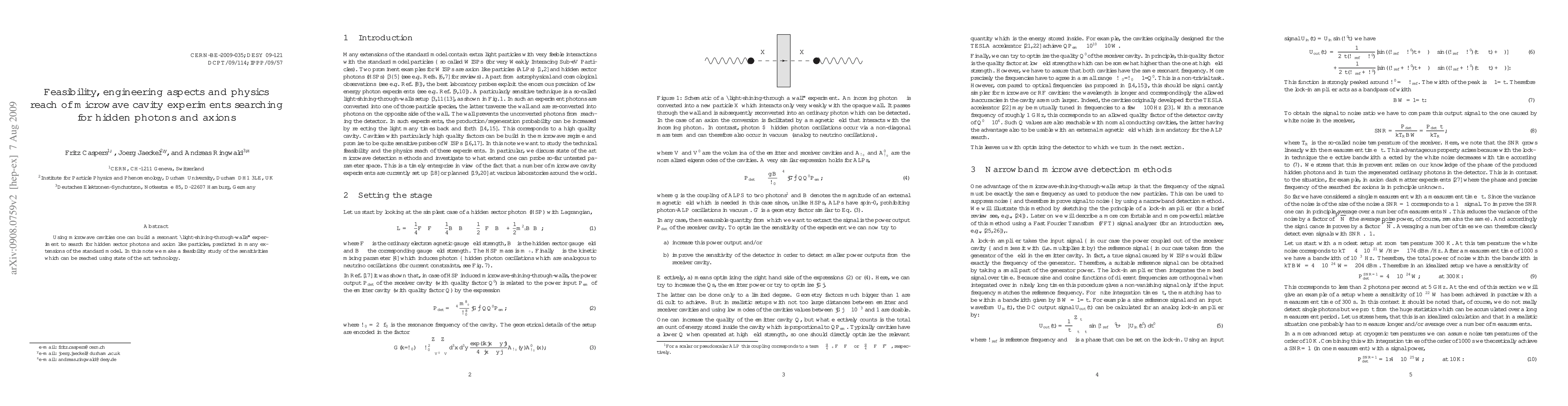 This paper investigates the feasibility of microwave cavity experiments designed to detect hidden sector photons and axion-like particles using resonant "light-shining-through-walls" techniques, and assesses the potential sensitivities achievable with current technology.