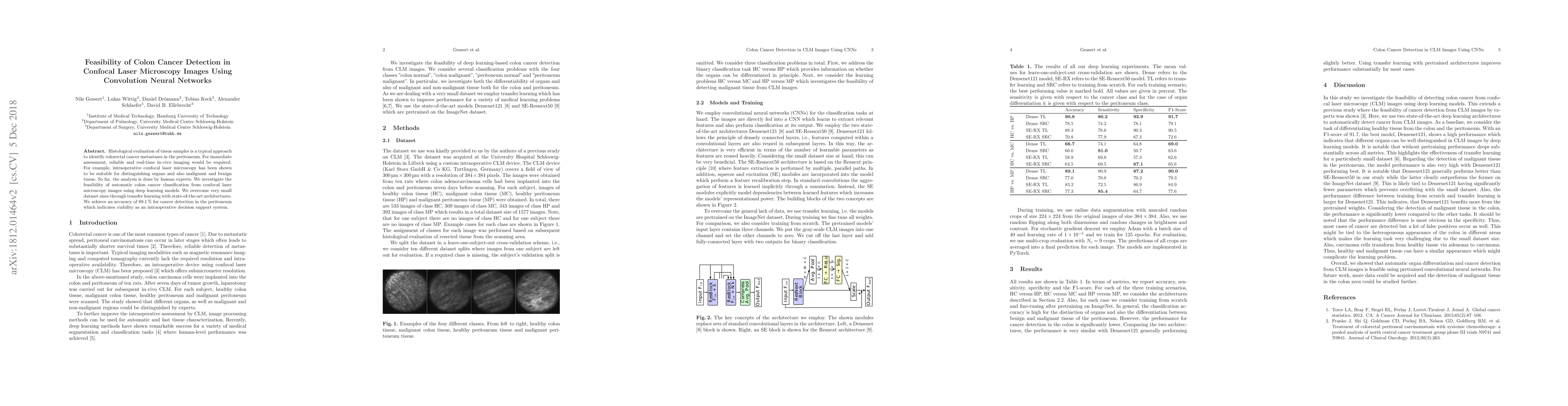 The study demonstrates the feasibility of automatic colon cancer classification from confocal laser microscopy images using deep learning models, which can aid in intraoperative decision-making.