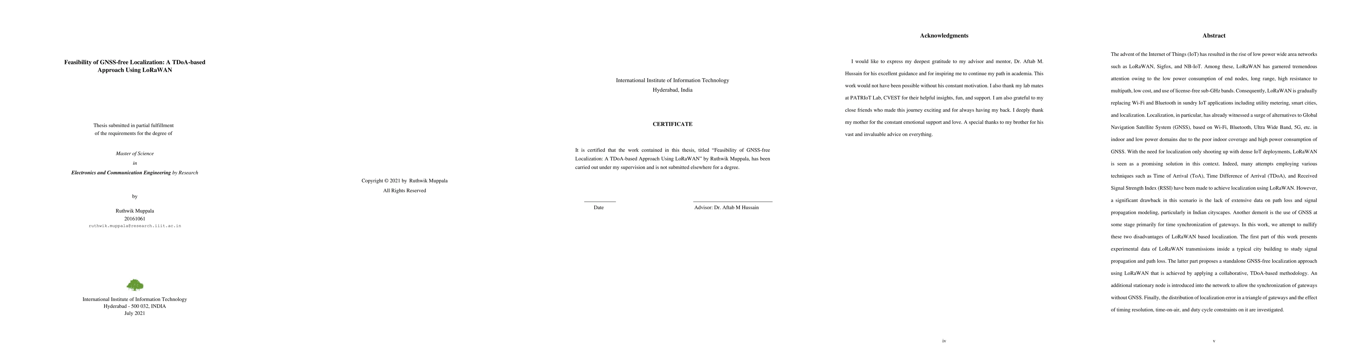 This paper explores a GNSS-free localization approach using LoRaWAN based on TDoA, addressing the lack of path loss data and reliance on GNSS for time synchronization. It proposes a collaborative TDoA method with a stationary node for synchronization, and investigates localization error distribution and the impact of timing constraints.
