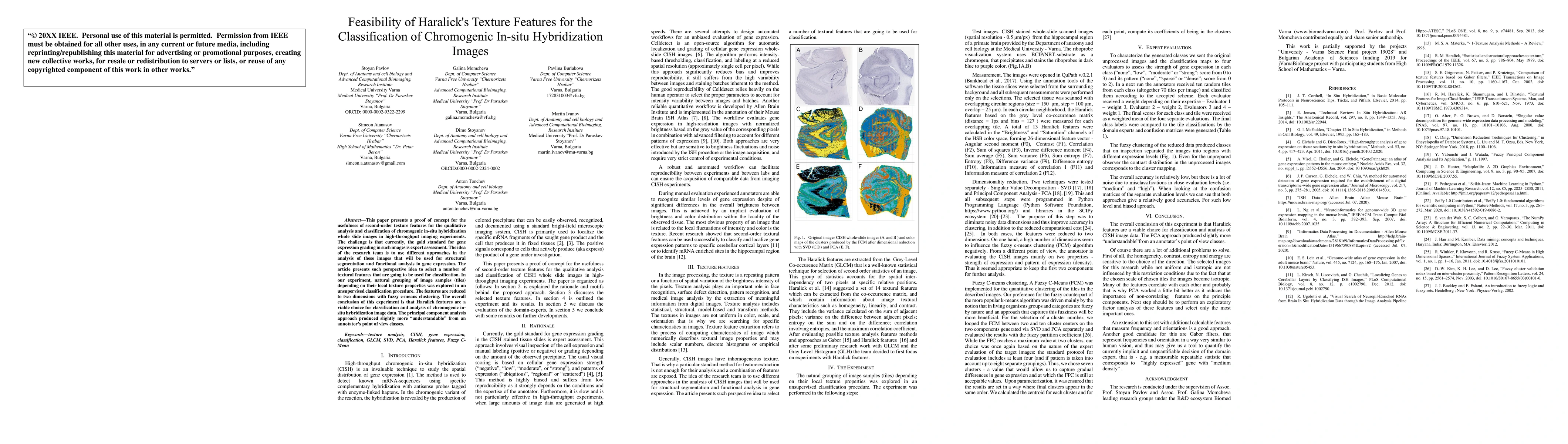 Researchers explored using Haralick texture features for classifying chromogenic in-situ hybridization images, finding them to be a viable choice for analysis.