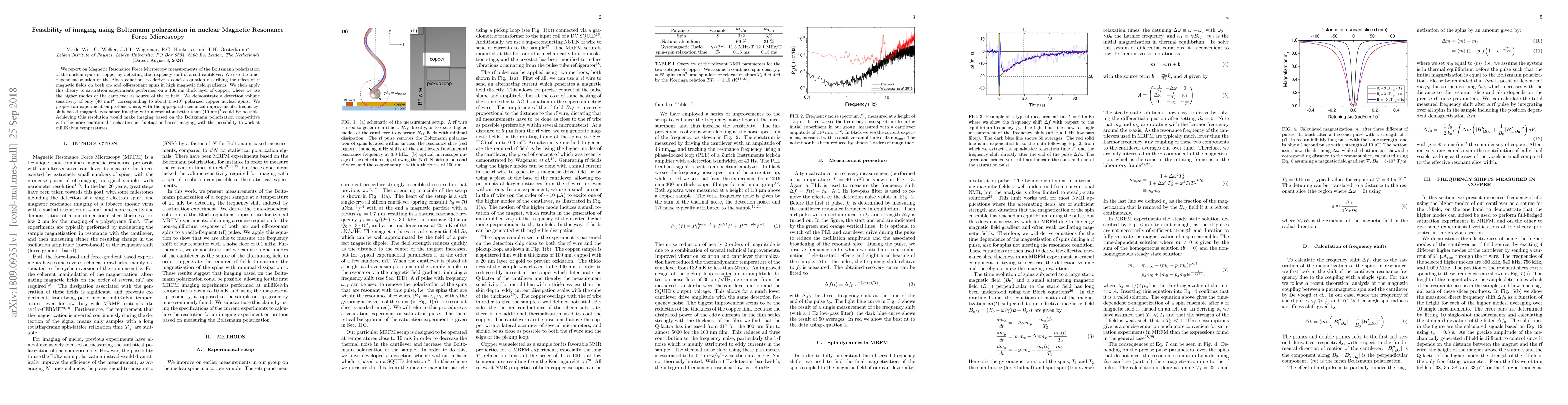 This paper investigates the feasibility of using Boltzmann polarization in Nuclear Magnetic Resonance Force Microscopy for imaging, demonstrating high sensitivity in detecting nuclear spin frequency shifts in copper. The authors propose a method that could achieve sub-10 nm resolution in imaging, potentially rivaling traditional stochastic spin-fluctuation imaging at milliKelvin temperatures.