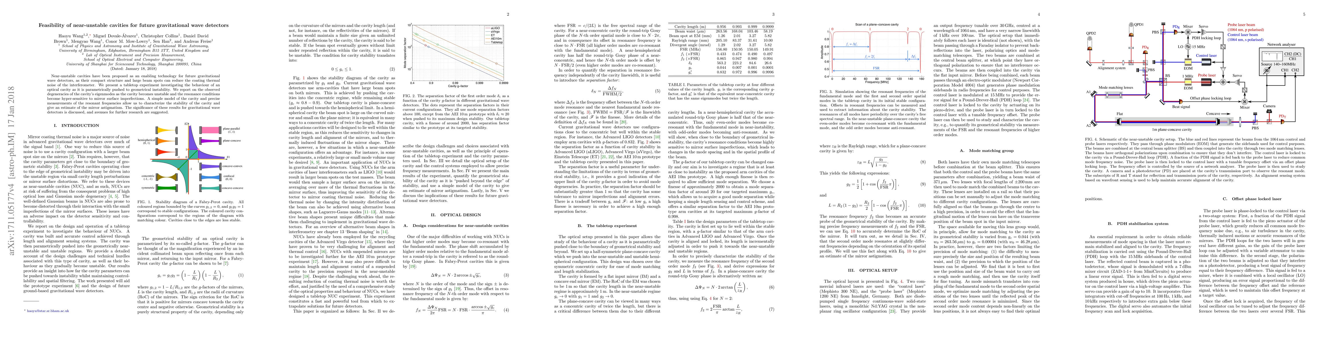 This paper investigates near-unstable optical cavities as a potential technology for future gravitational wave detectors, demonstrating their compact design and reduced thermal noise. The study reports on a tabletop experiment revealing the eigenmode degeneracies and hyper-sensitivity to mirror imperfections as the cavity approaches instability, providing insights into stability and astigmatism.