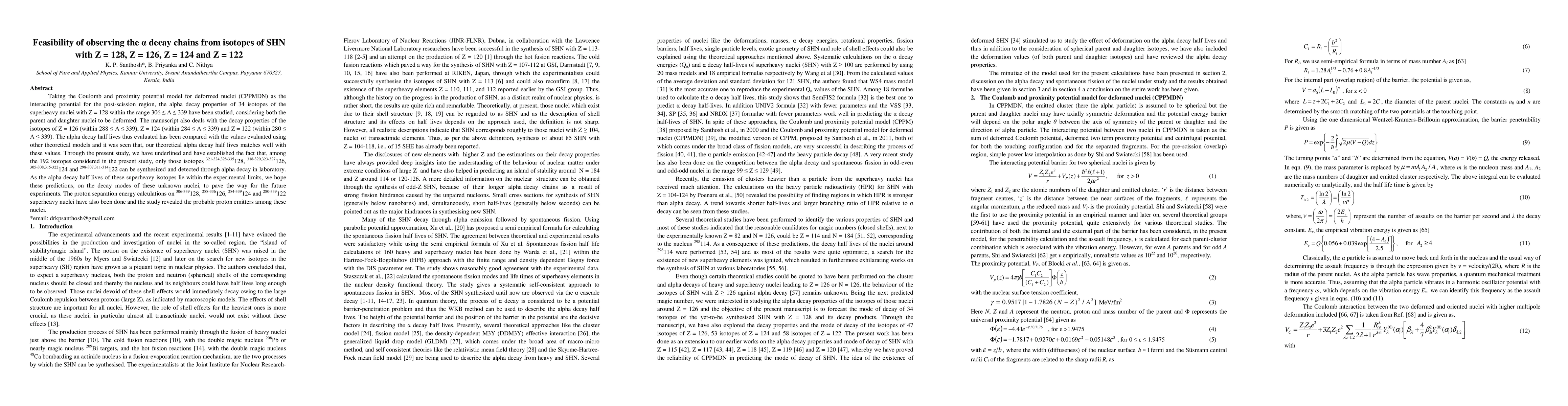 Researchers studied alpha decay chains in superheavy nuclei with Z = 128, 126, 124, and 122, predicting which isotopes can be synthesized and detected through alpha decay in the lab.