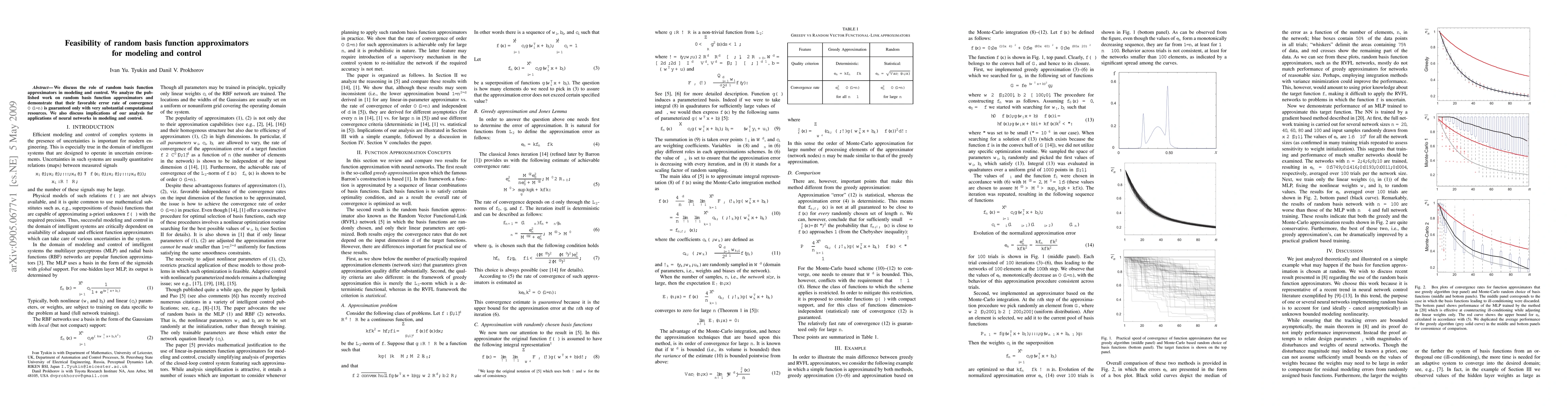 This paper examines the use of random basis function approximators in modeling and control, highlighting their O(1/n) error rate but noting the significant computational resources required. It also explores the implications of these findings for neural network applications in the same fields.
