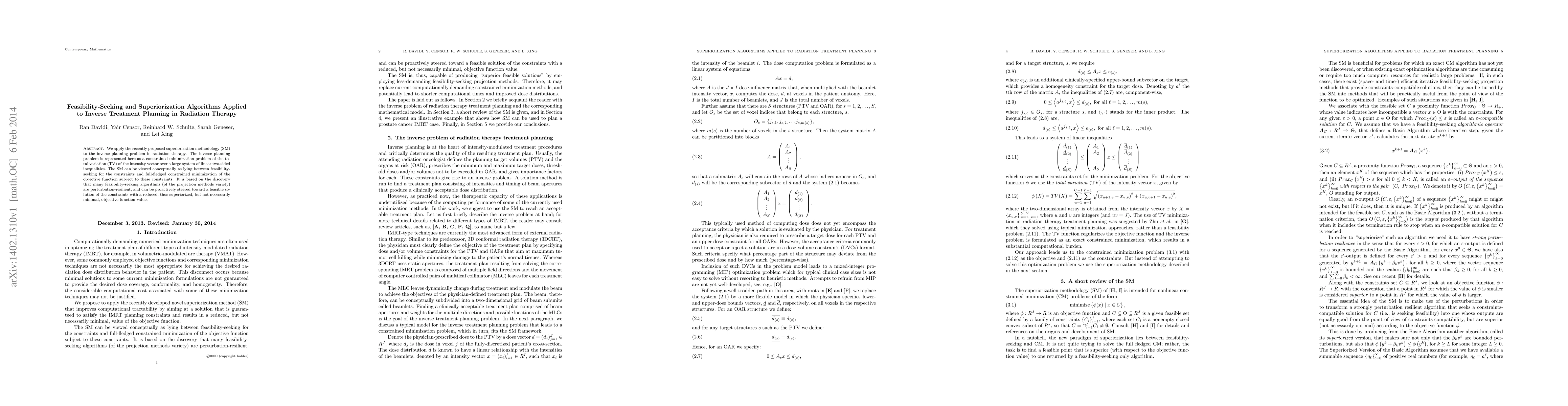 This paper applies superiorization methodology to inverse planning in radiation therapy, framing it as a constrained minimization problem. The superiorization method bridges feasibility-seeking for constraints and full optimization, leveraging perturbation-resilient projection methods to find a feasible solution with a reduced objective function value.